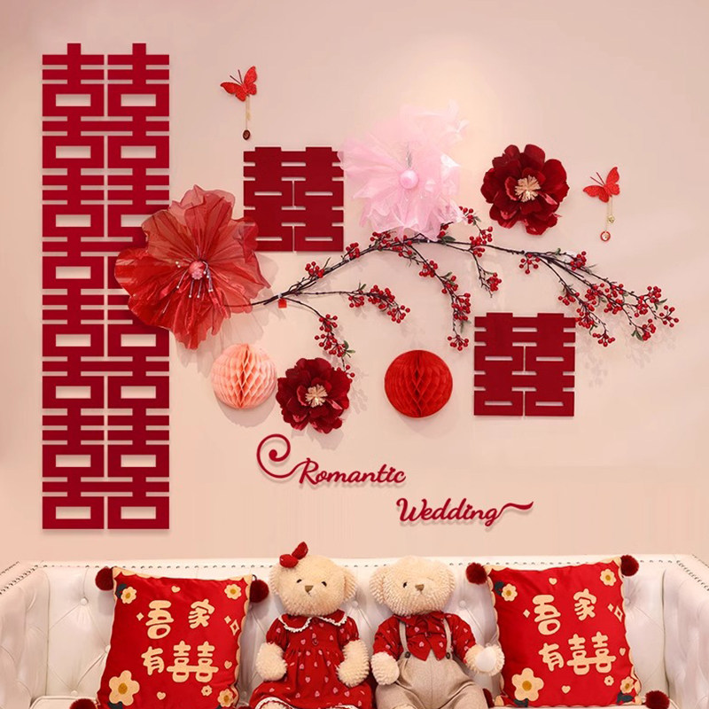 Набор для украшения свадебной комнаты со счастливыми персонажами, новый свадебный дом, мужская и женская вечеринка, гостиная, спальня, диван, украшение стены на фоне телевизора