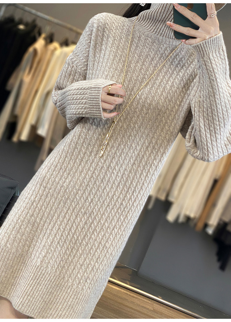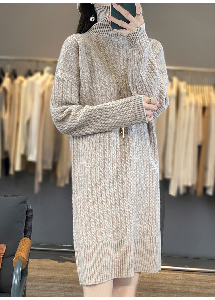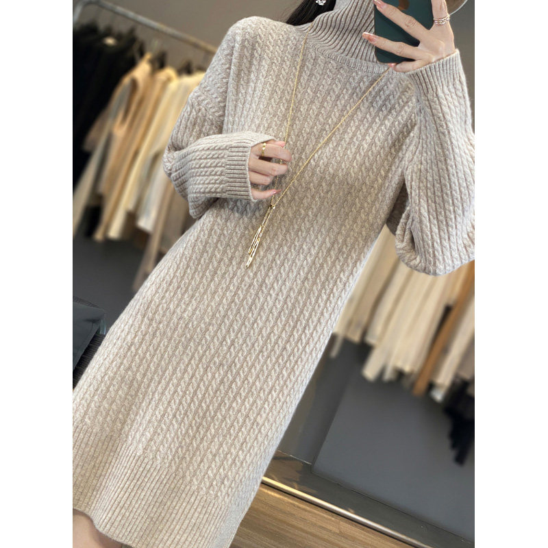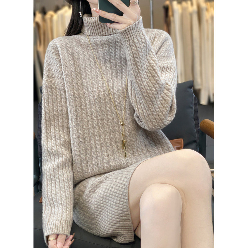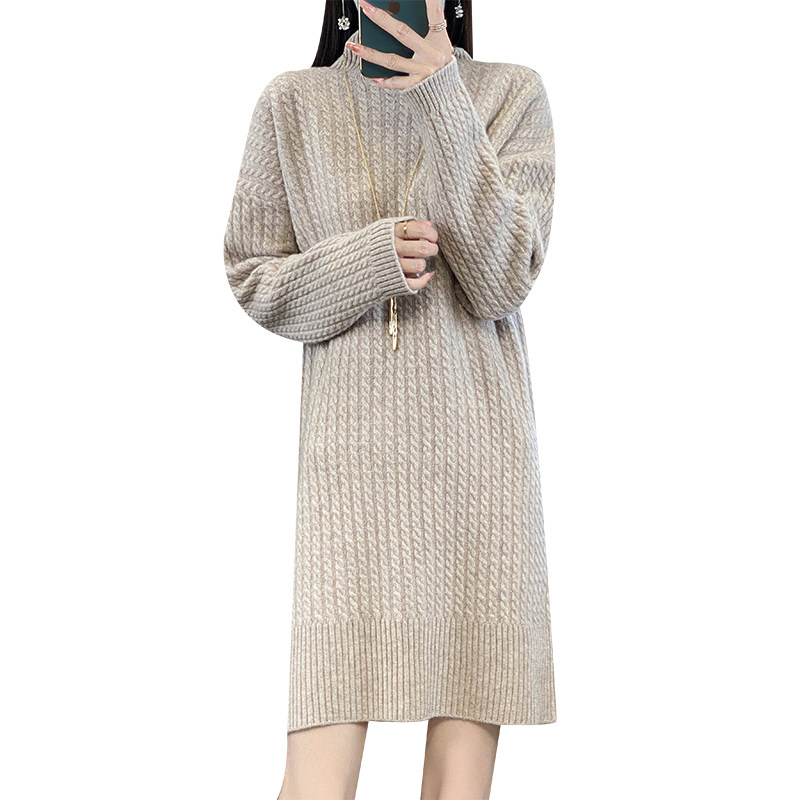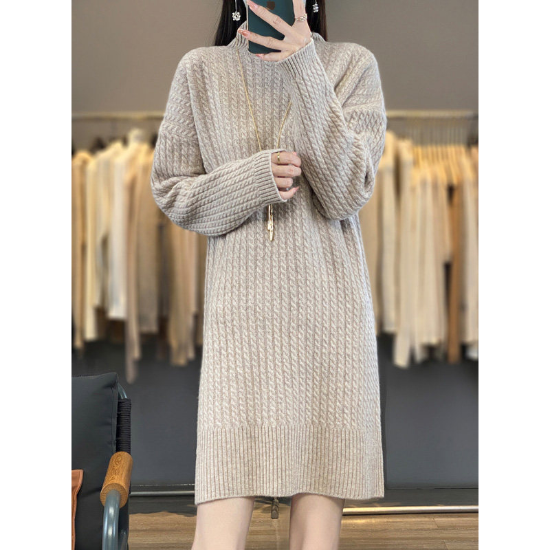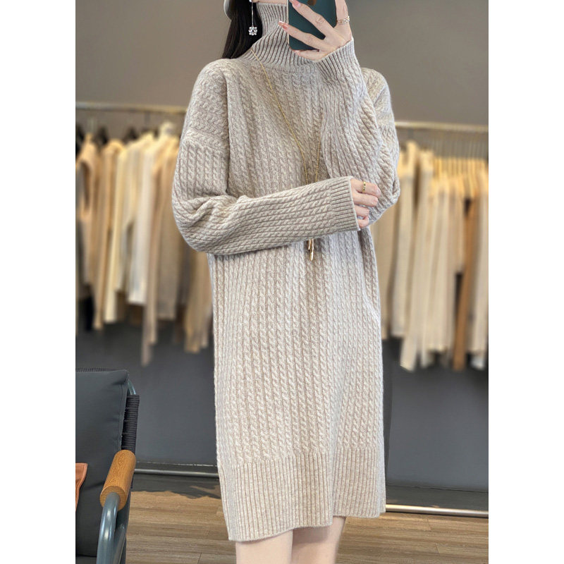 Длинное кашемировое шерстяное трикотажное шерстяное платье, увеличенная толщина, свободный прямой крой, длина миди, средней длины