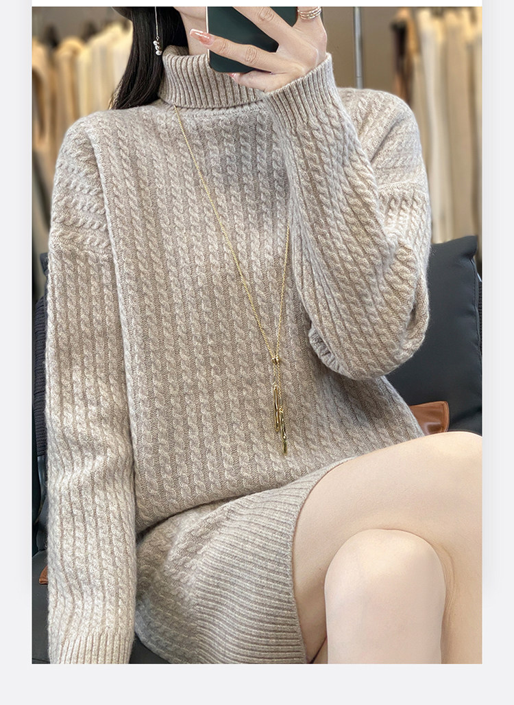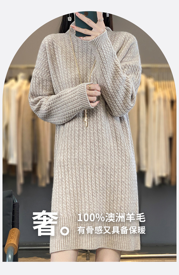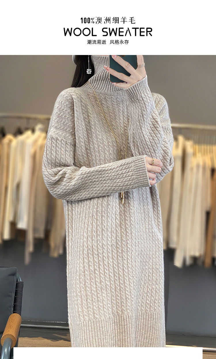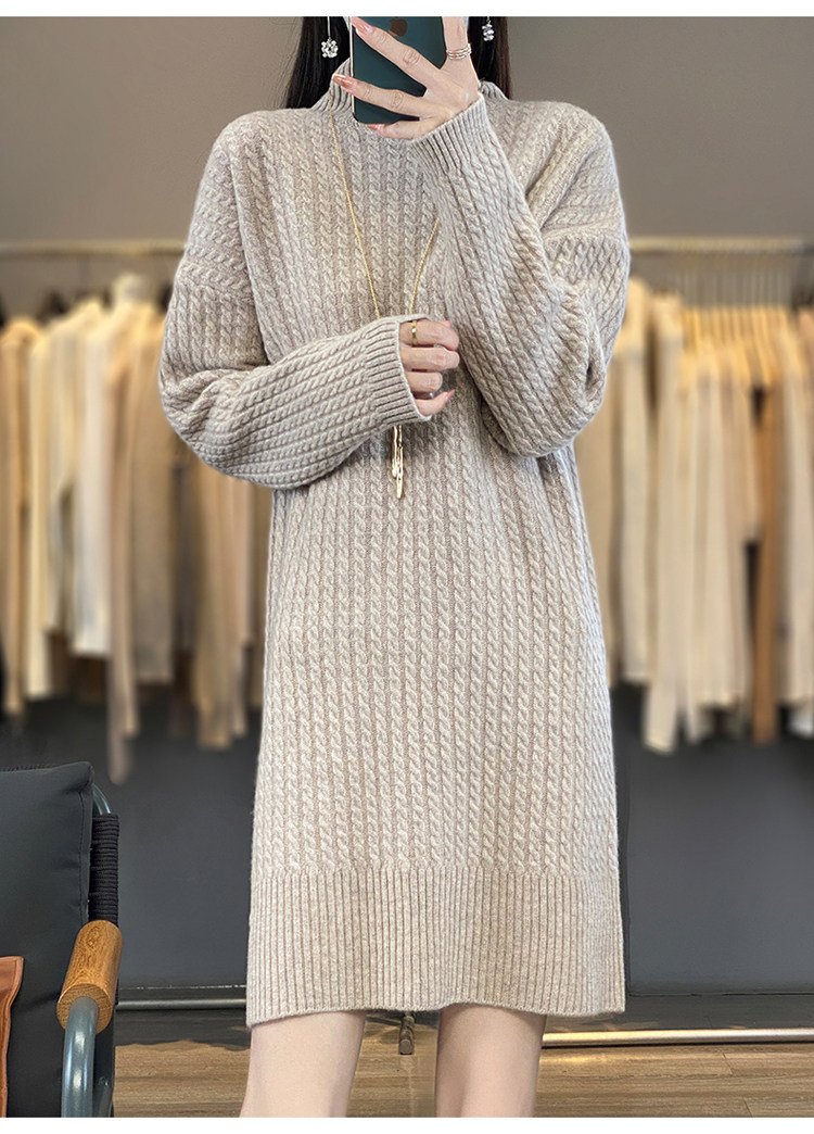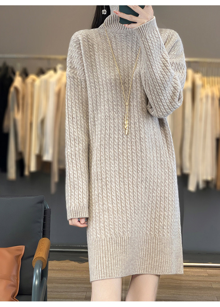 Длинное кашемировое шерстяное трикотажное шерстяное платье, увеличенная толщина, свободный прямой крой, длина миди, средней длины