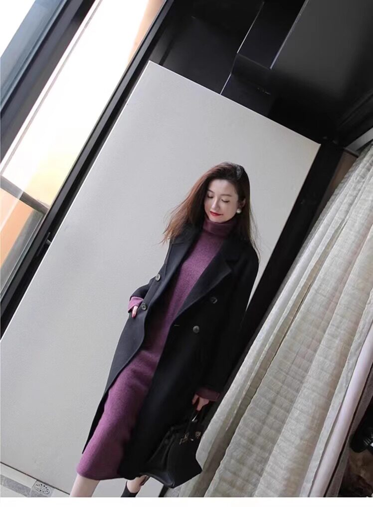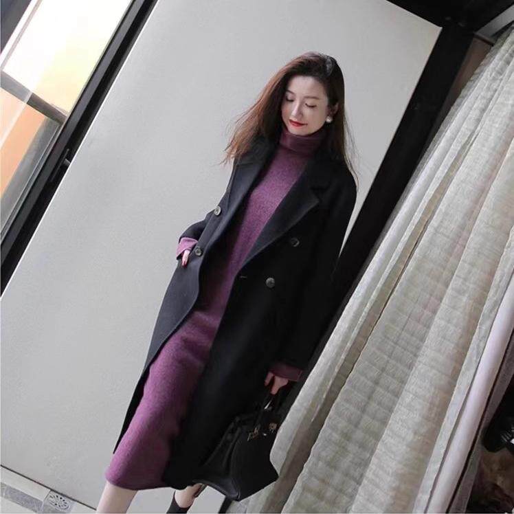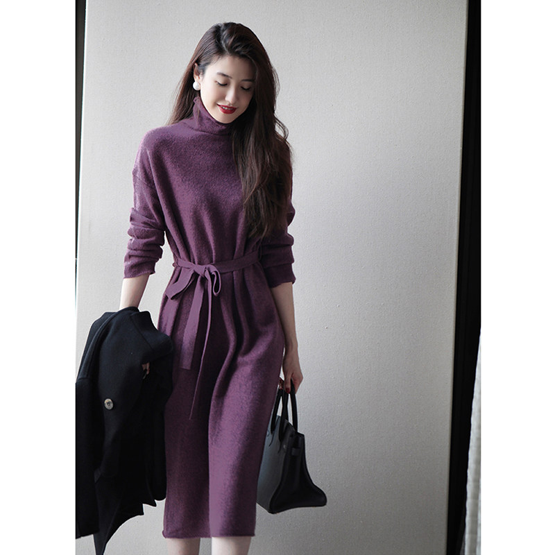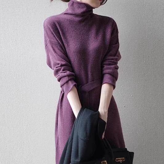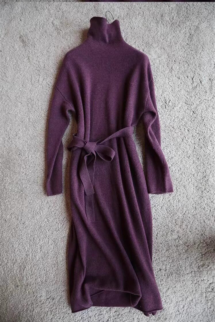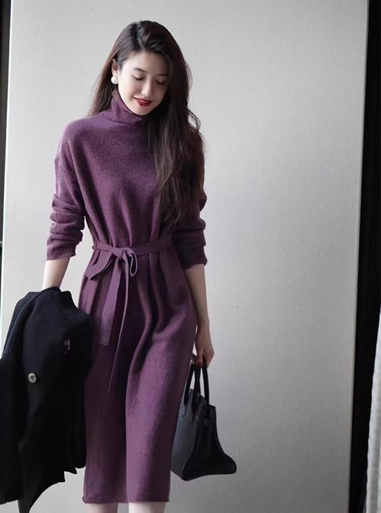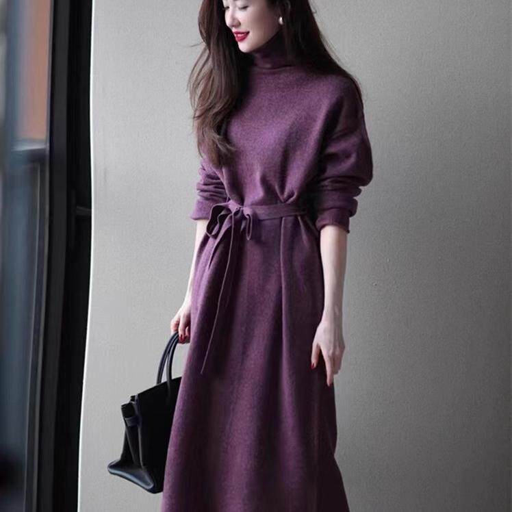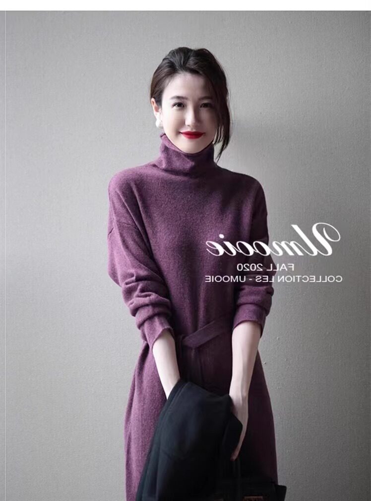 Шерстяное демисезонное длинное платье, кашемировое базовое платье-свитер, средней длины, свободный крой