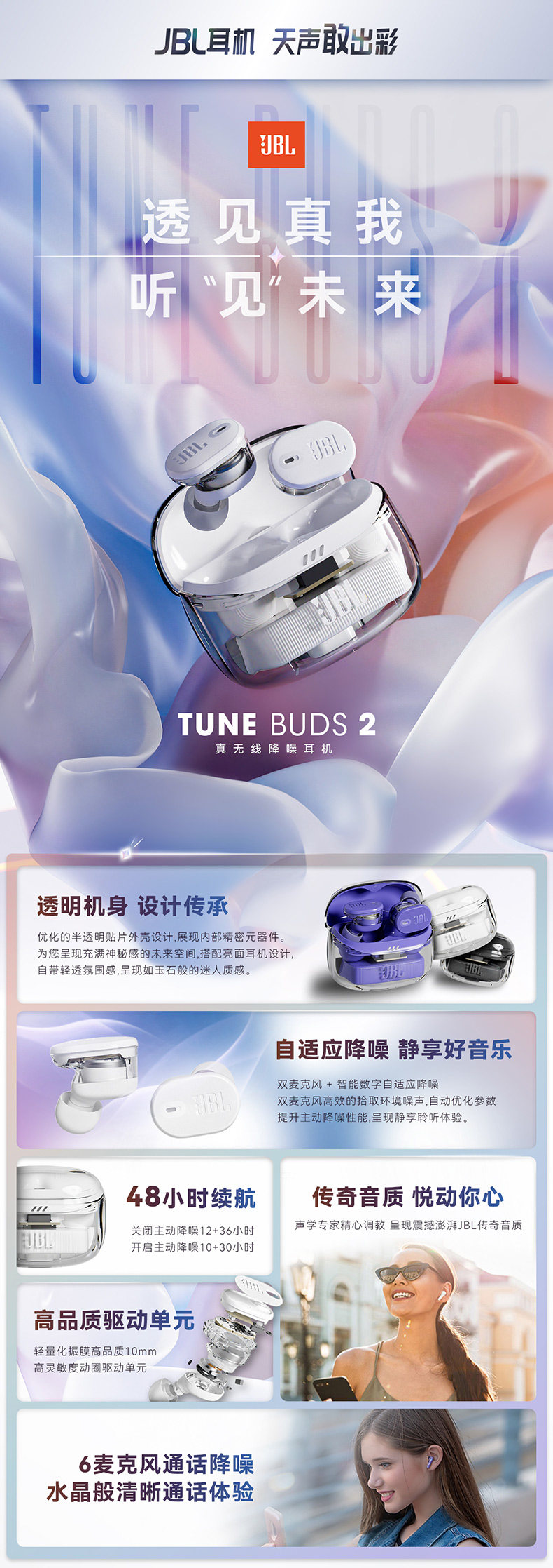 [Новый продукт] JBL TUNE BUDS Bluetooth-наушники 2-го поколения с шумоподавлением, настоящий беспроводной кабель-вкладыши, полупрозрачный