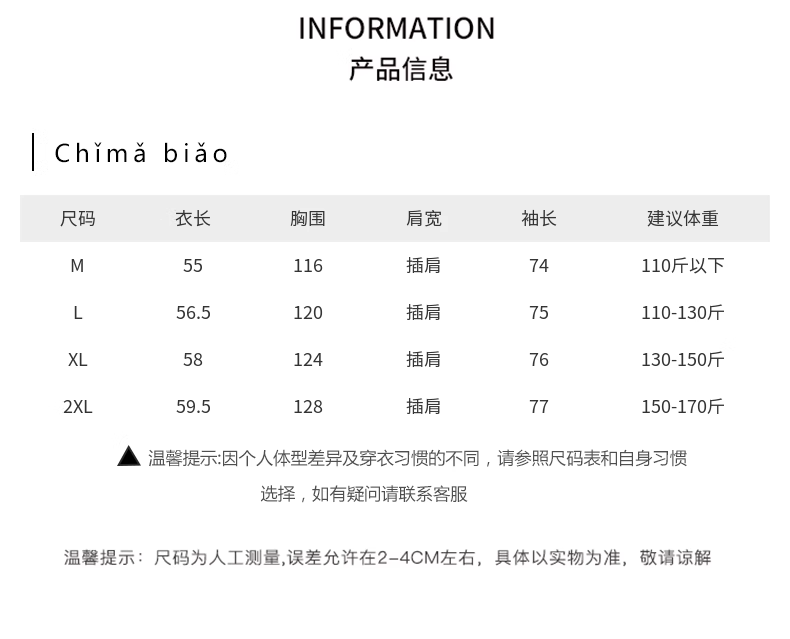 | Размер: | М [предложение 80-100 кот]], L [Предложение 100-115 Catties], XL [предложение 115-130 Catties], 2xl [предложение 130-145 Catties] |