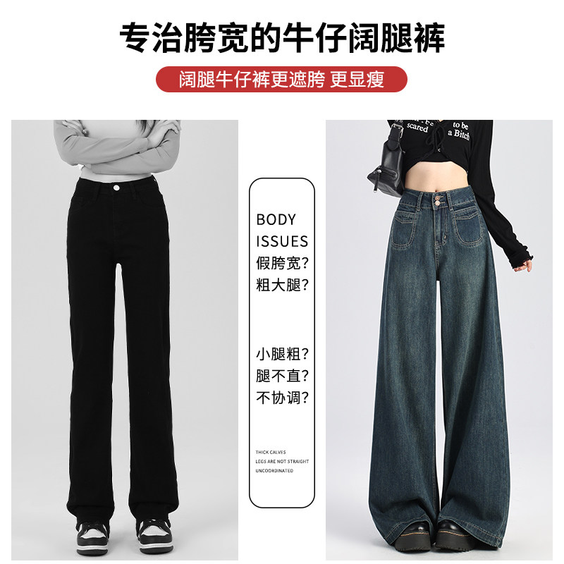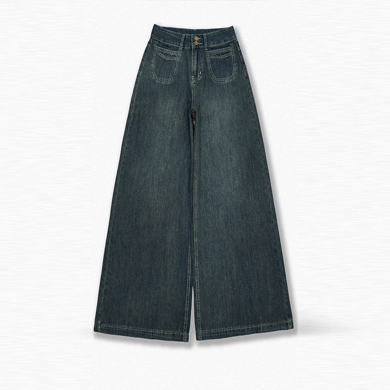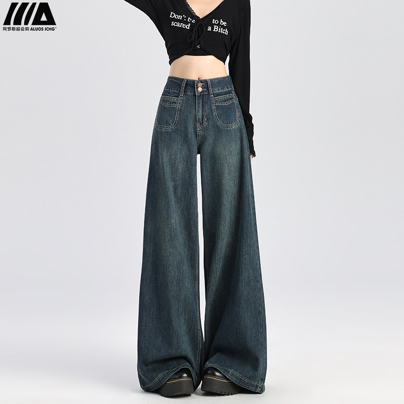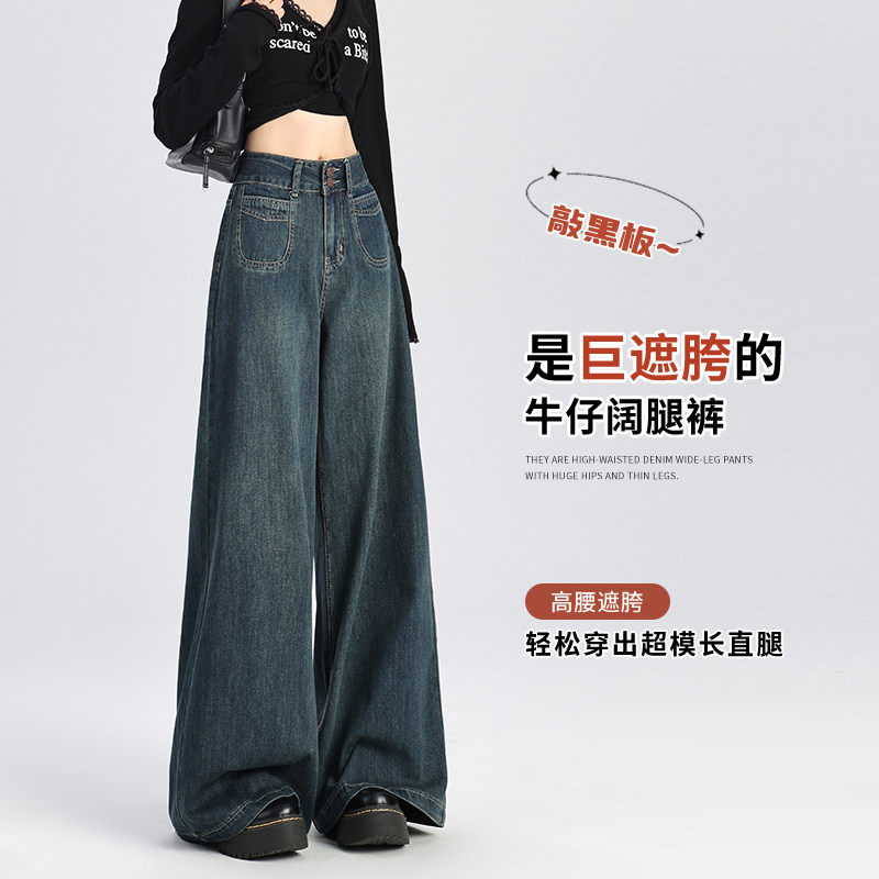 Темно-синие джинсы, штаны, осенние приталенные штаны-клёш, свободный крой, высокая талия
