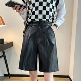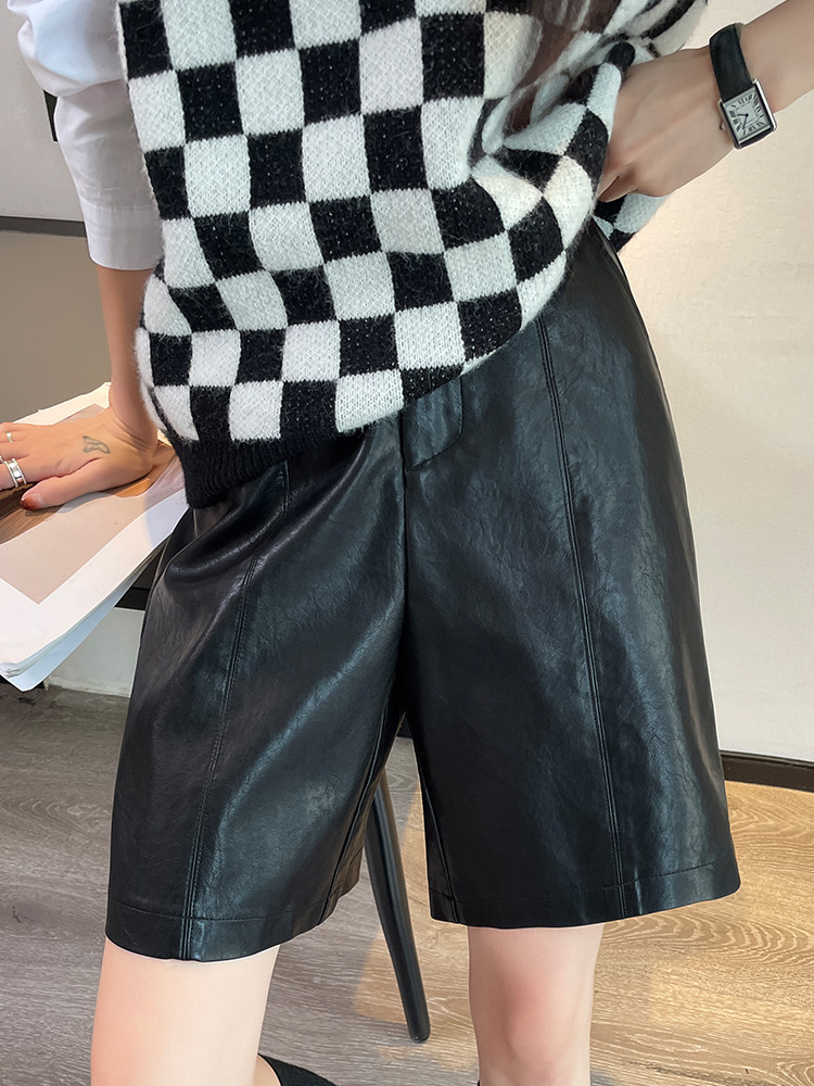 Полиуретановые шорты, демисезонные черные штаны, свободный прямой крой, высокая талия, оверсайз