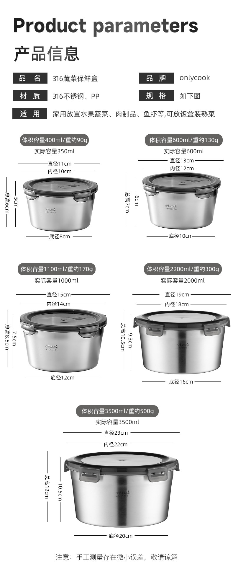 onlycook Пищевой ланч-бокс из нержавеющей стали 316, ланч-бокс, ланч-бокс, герметичная миска для хранения свежести с крышкой