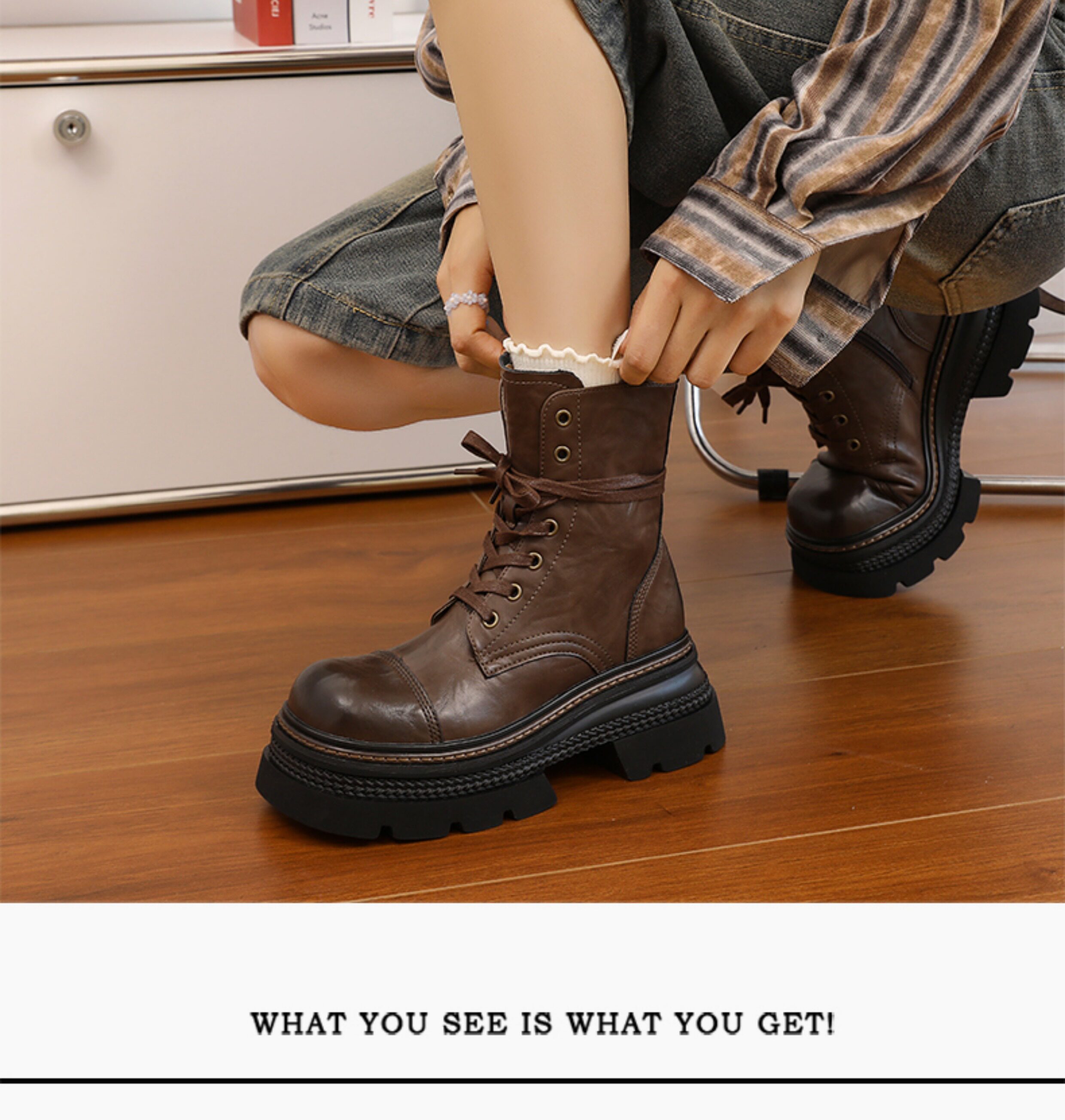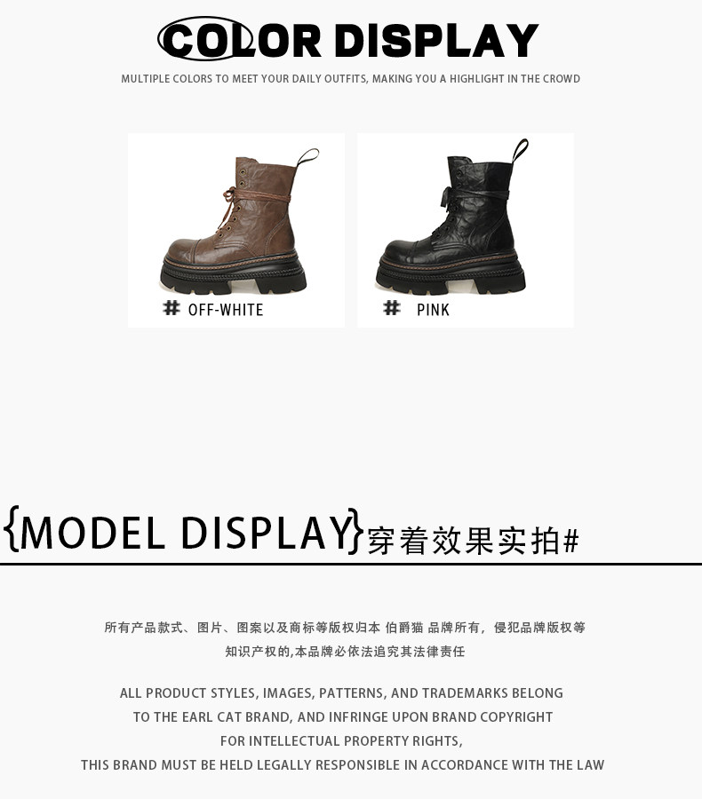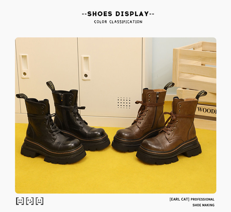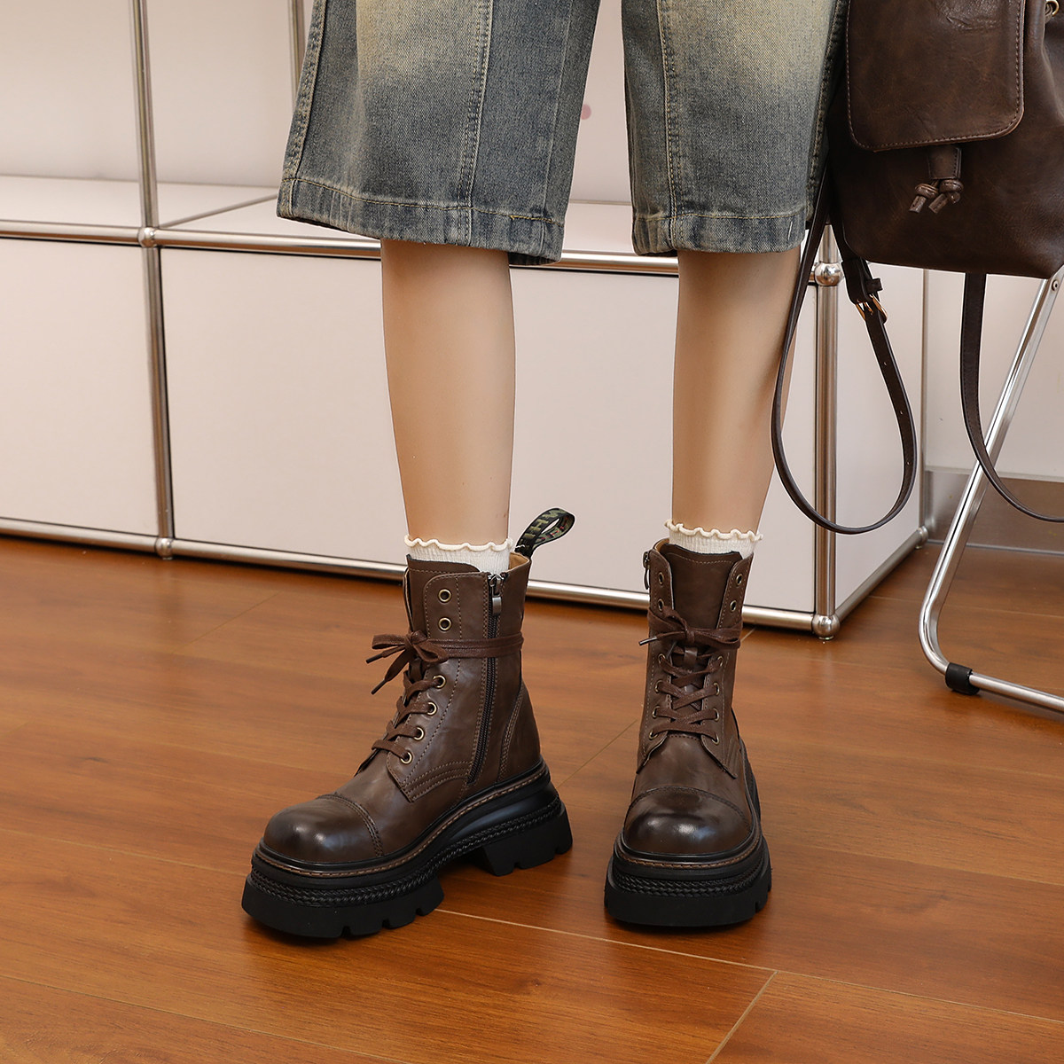 伯爵猫 Martens, высокие весенние короткие сапоги с молнией, 7см, тренд сезона, из натуральной кожи