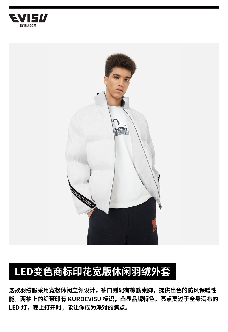 [Celebrity Same Style] Мужская куртка на утином пуху EVISU KURO со светодиодным светящимся эффектом 85