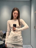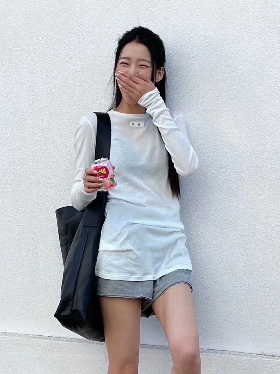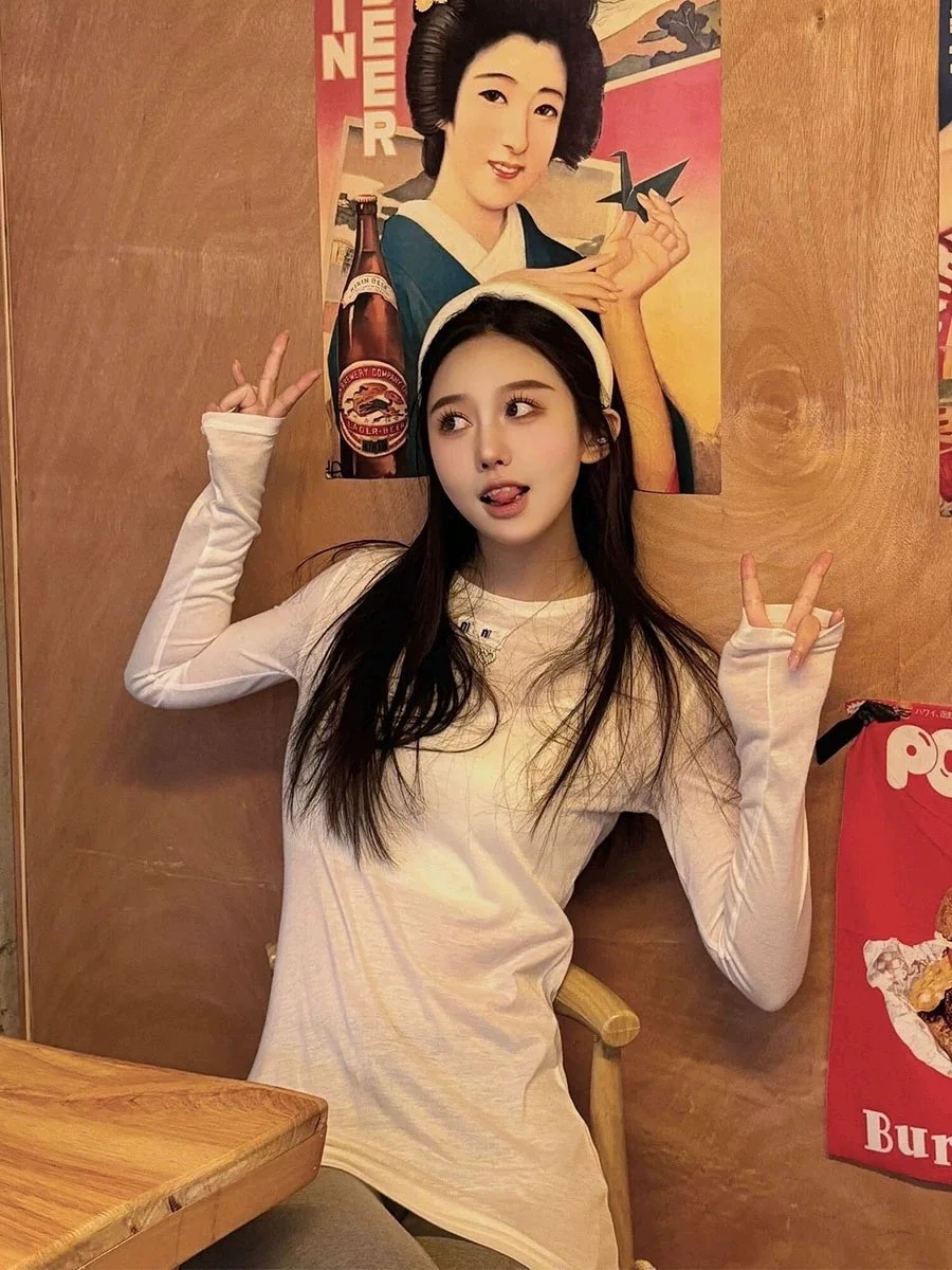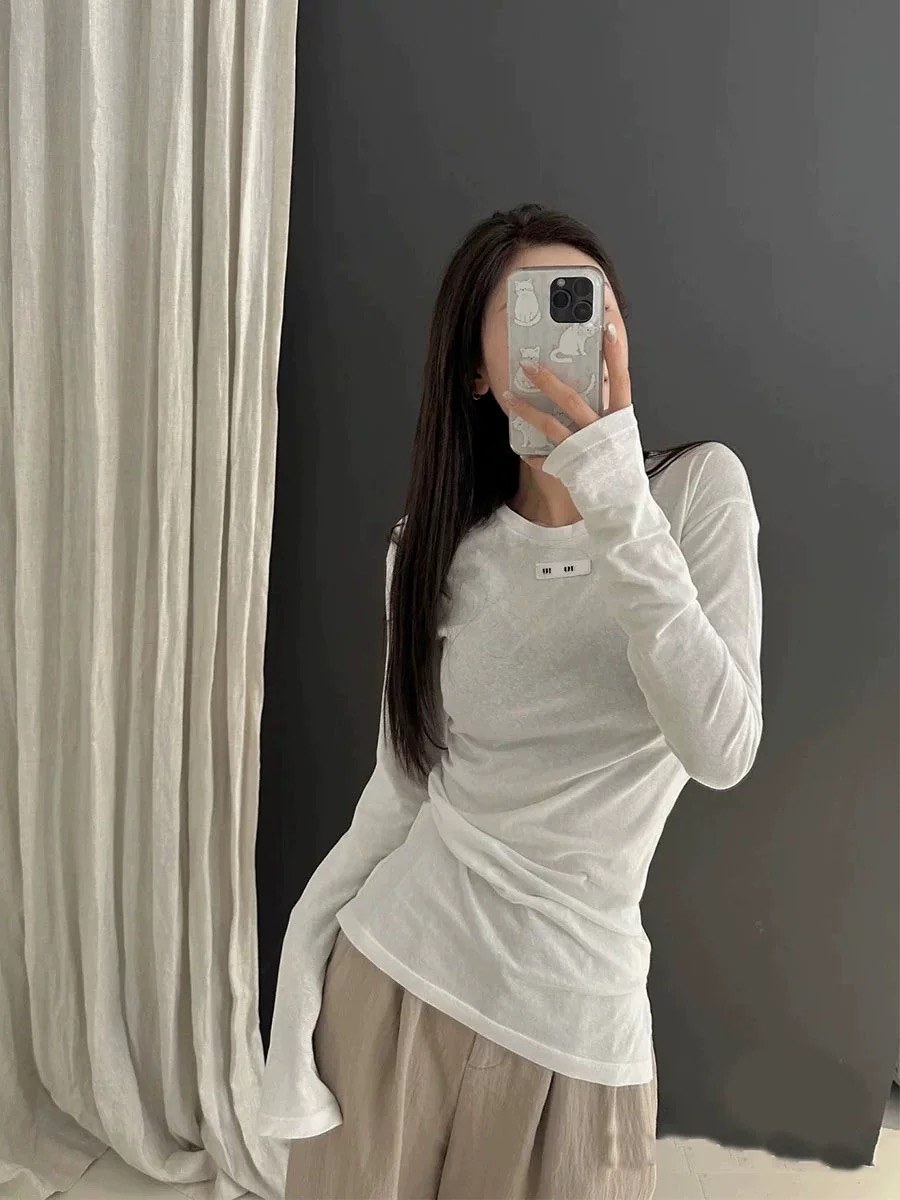 Осенний однотонный приталенный лонгслив для отдыха, круглый воротник