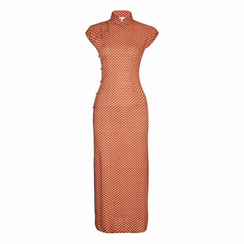Летнее длинное ретро ципао без рукавов, с рукавом, набивной шелк