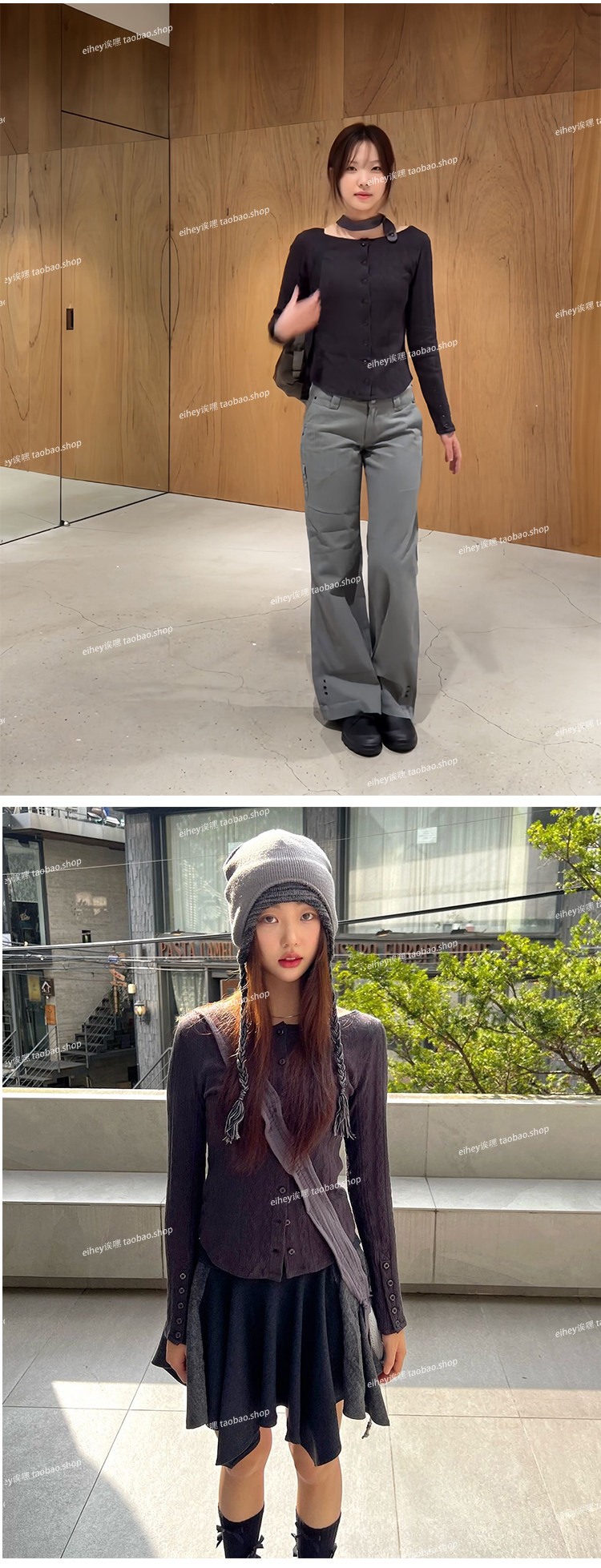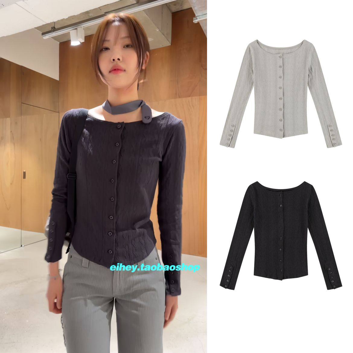 eihey Японский ретро приталенный лонгслив, кардиган