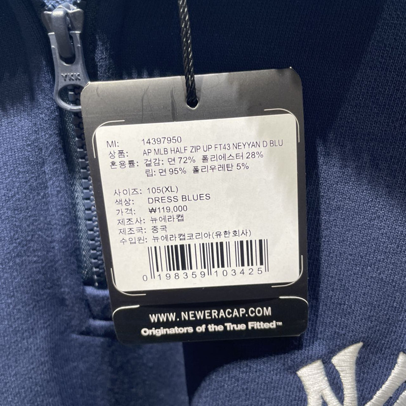 Южная Корея Newera New Yinhua Подлинная покупка 24 New NY Embroidery Small Standard Semi -Zipper Loose Sweater