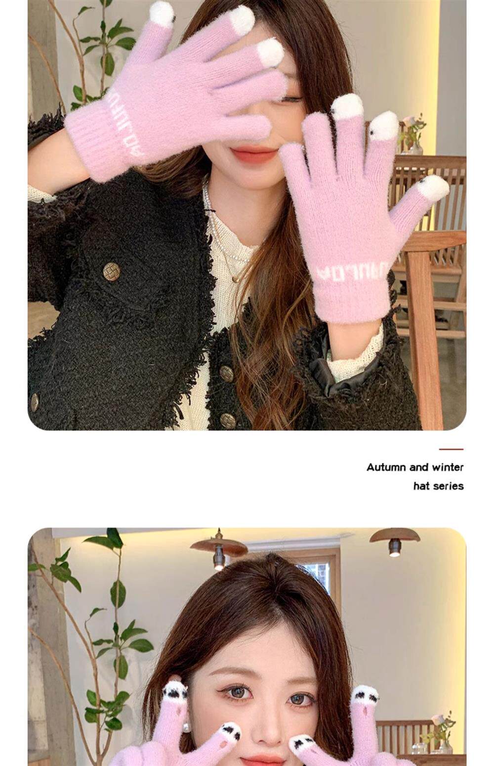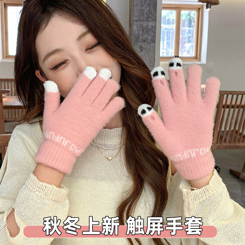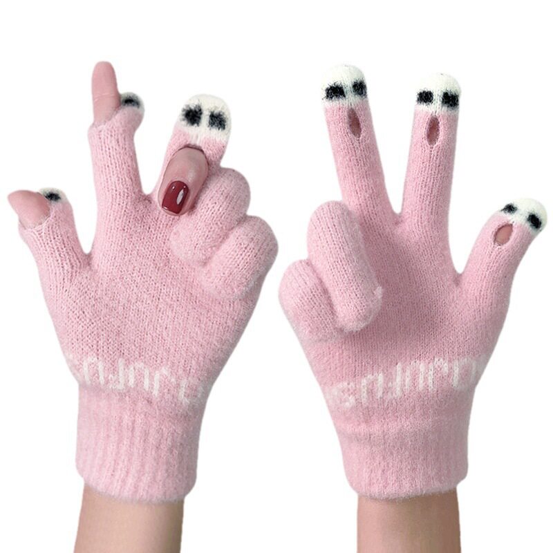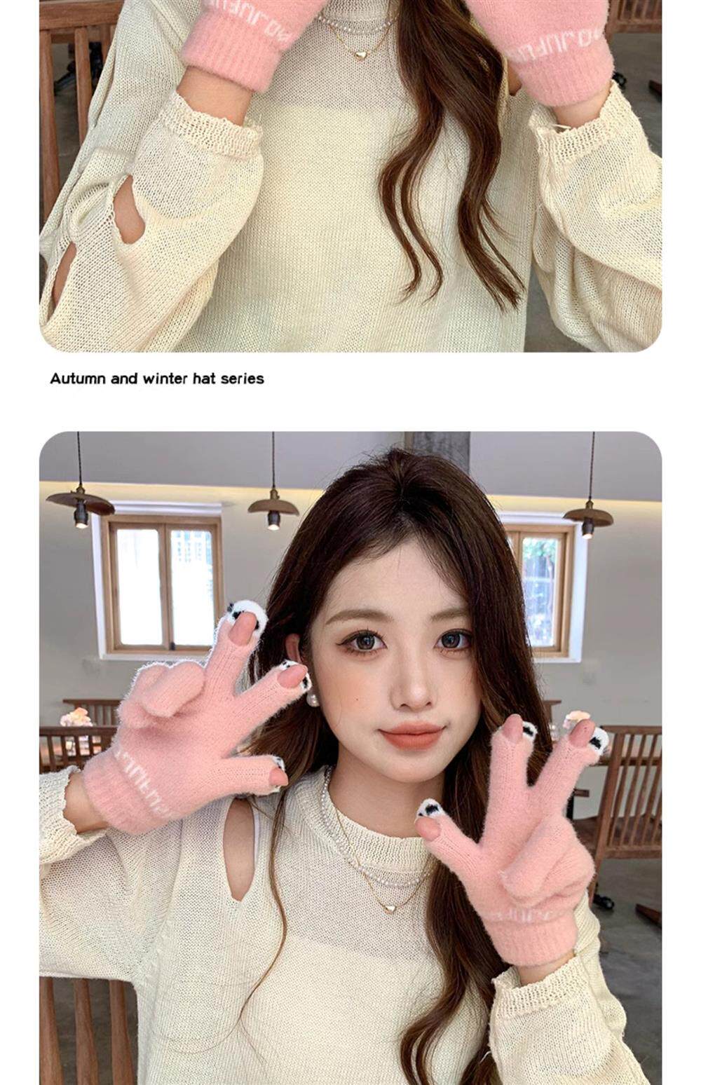 Демисезонные удерживающие тепло шерстяные трикотажные перчатки, милый комплект для школьников и студентов, подходят для подростков, увеличенная толщина