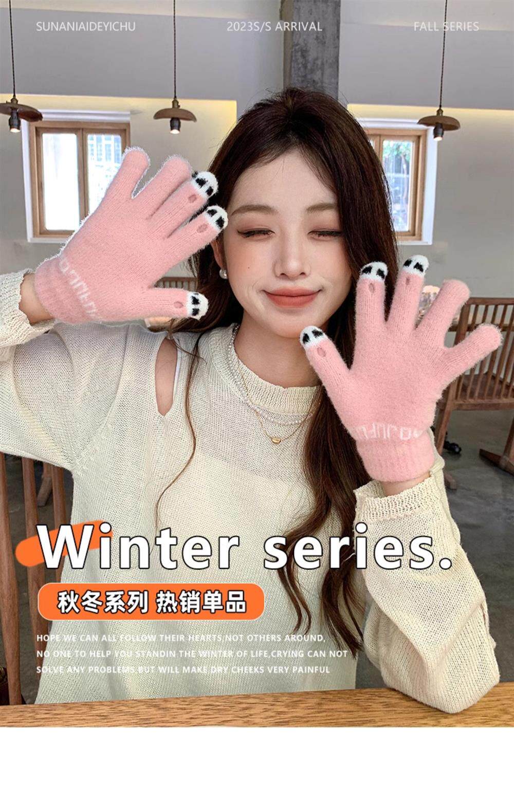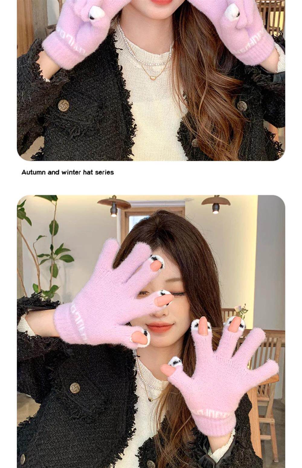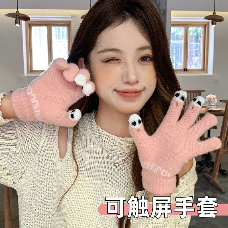 Демисезонные удерживающие тепло шерстяные трикотажные перчатки, милый комплект для школьников и студентов, подходят для подростков, увеличенная толщина