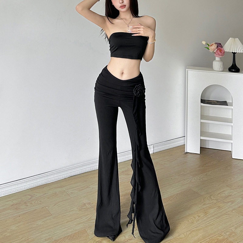 Ретро приталенные штаны-клёш с кисточками, штаны, высокая талия, в обтяжку