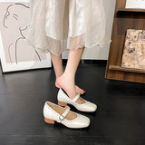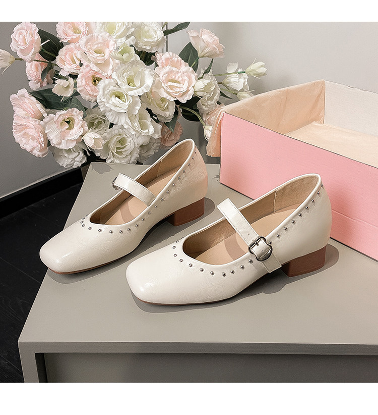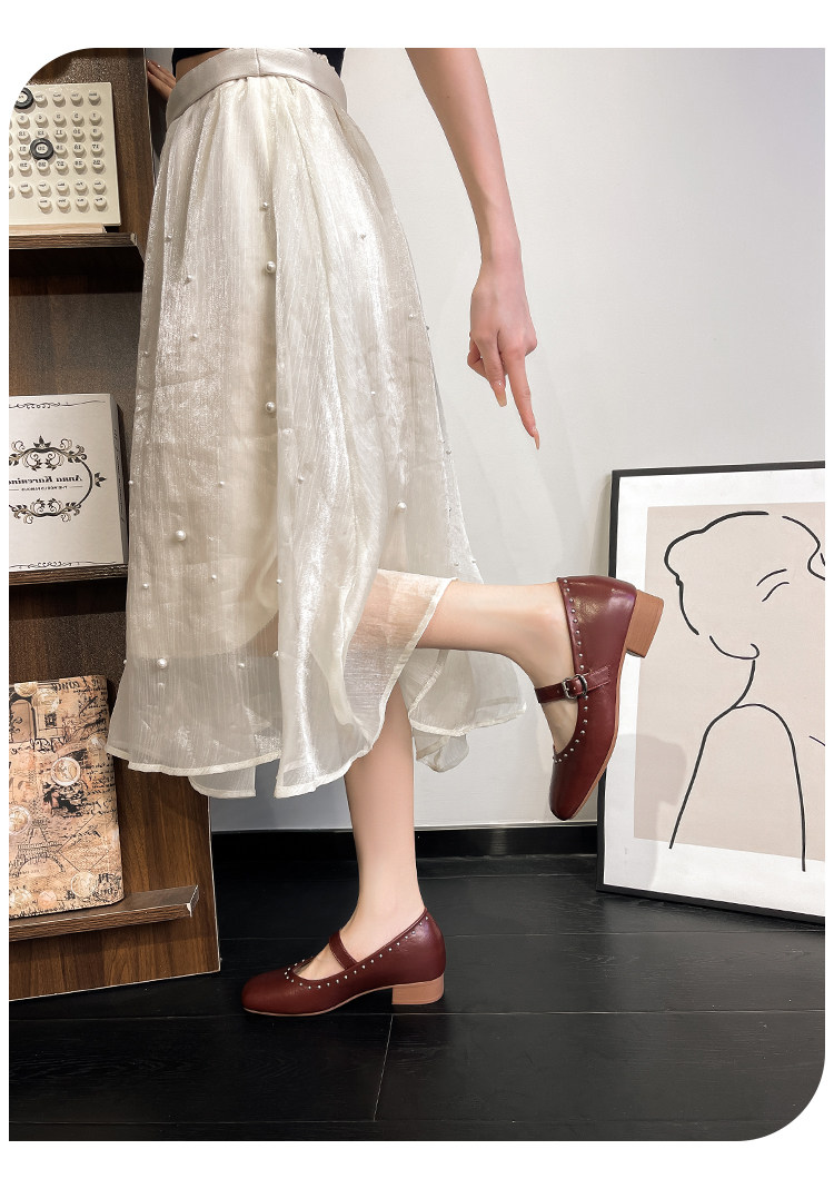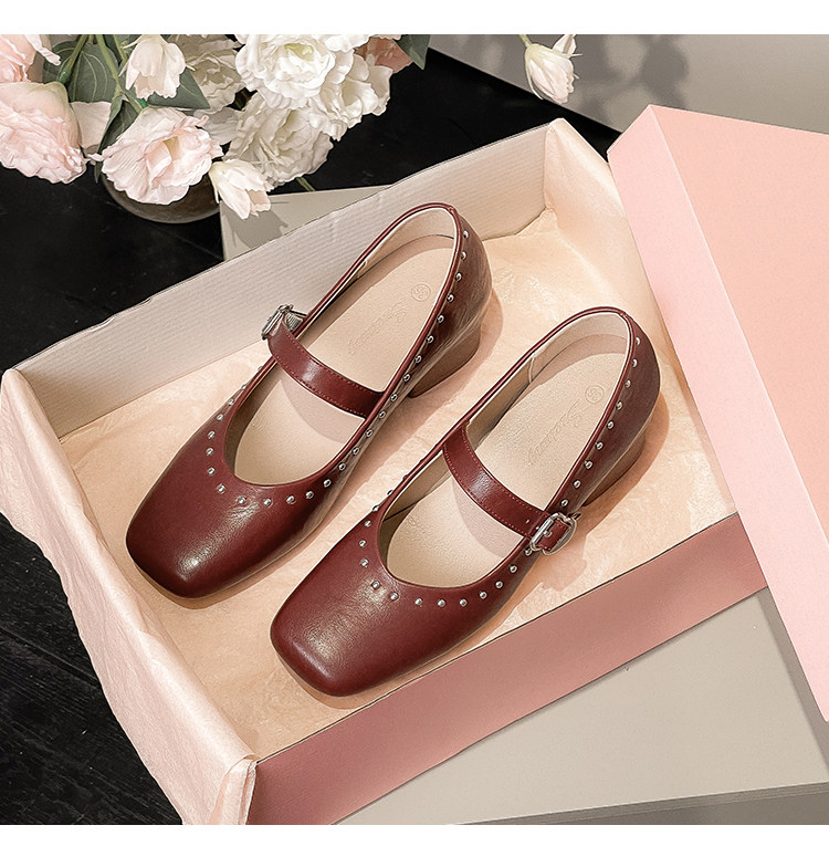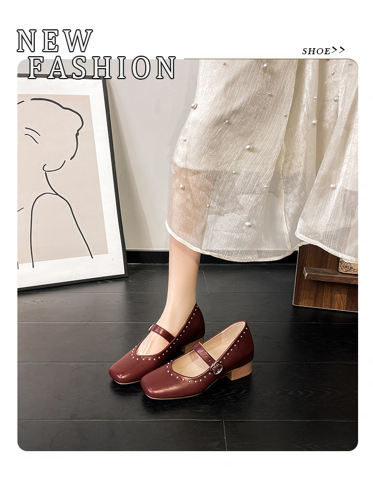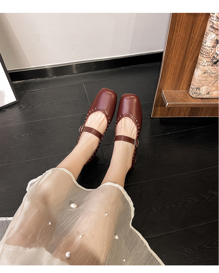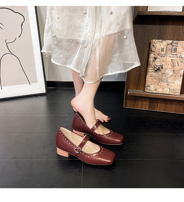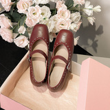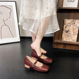 Супер мягкая ярко -кожа ~ Растущие красные одиночные туфли в коже, женский толстый каблук мелкий балет, обувь Мэри Жен, бабушка