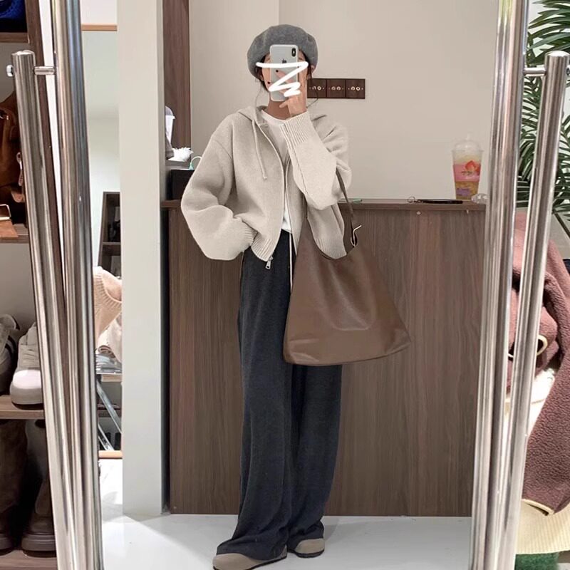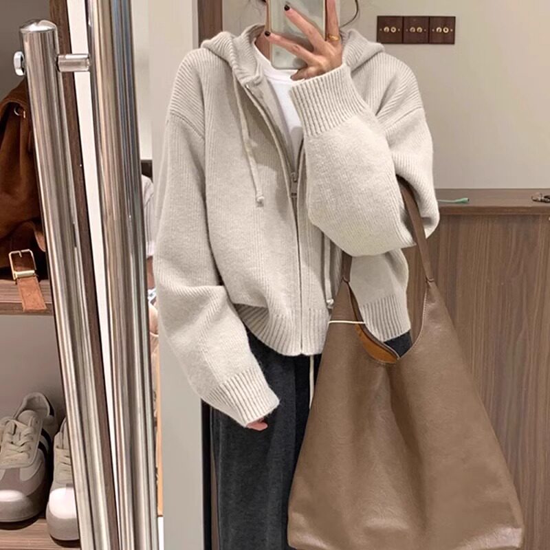 Демисезонный свитер, осенняя толстовка с капюшоном с капюшоном, трикотажный кардиган, свободный крой