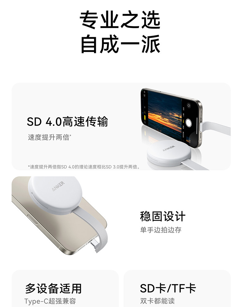 Anker Typec Apple Photography Card Camerer Camera Двойная секурская флэш-память передачи флэш-памяти Apple Photography, совместимая с iPhone 15/Android/компьютер.