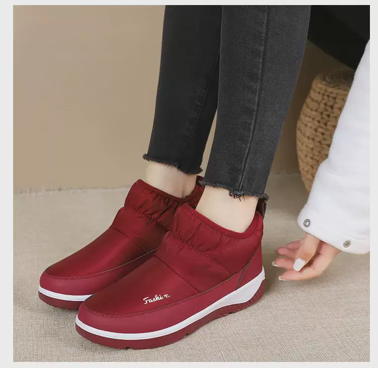Снежные ботинки женская короткая хлопчатобумажная туфли с водонепроницаемыми однопроницаемым пирсом с толстыми бархатными рабочими обувьми не сокрушительные ватные туфли согревают