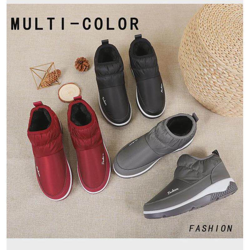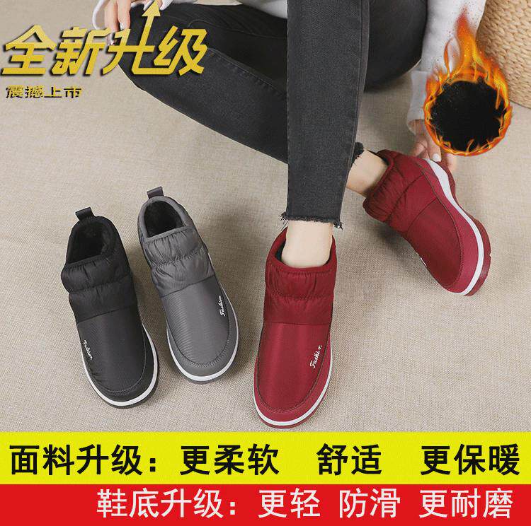 Снежные ботинки женская короткая хлопчатобумажная туфли с водонепроницаемыми однопроницаемым пирсом с толстыми бархатными рабочими обувьми не сокрушительные ватные туфли согревают
