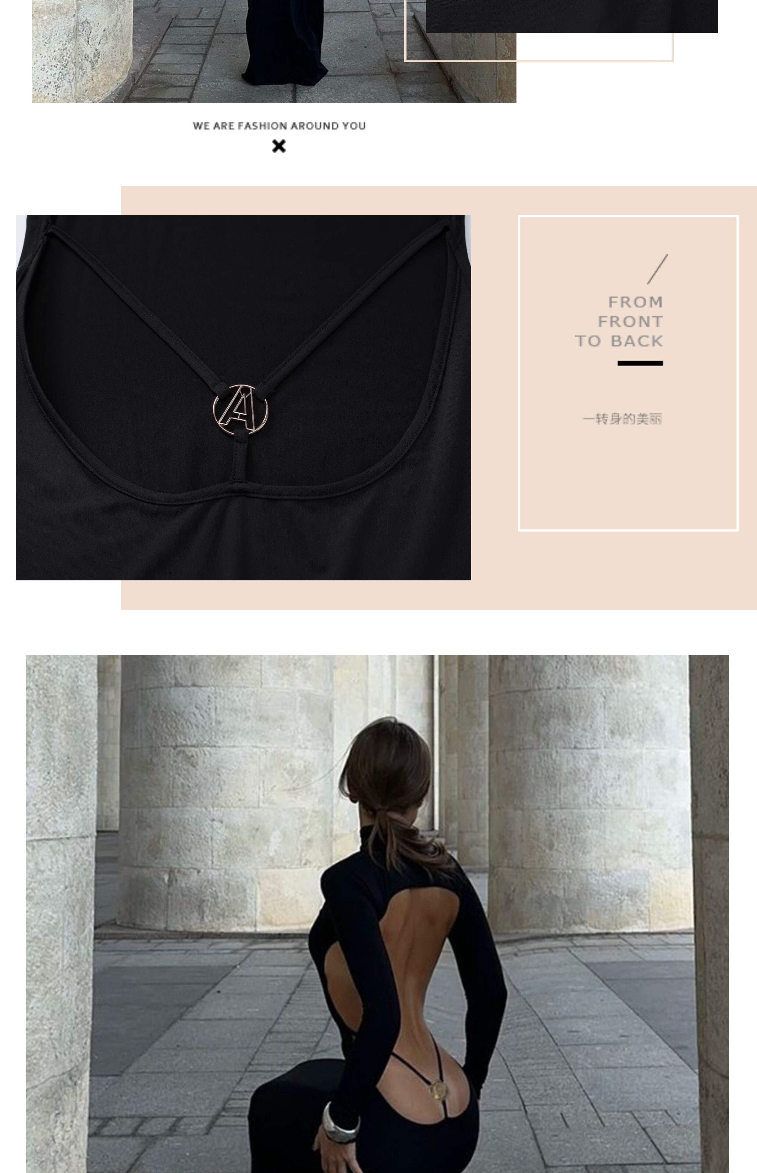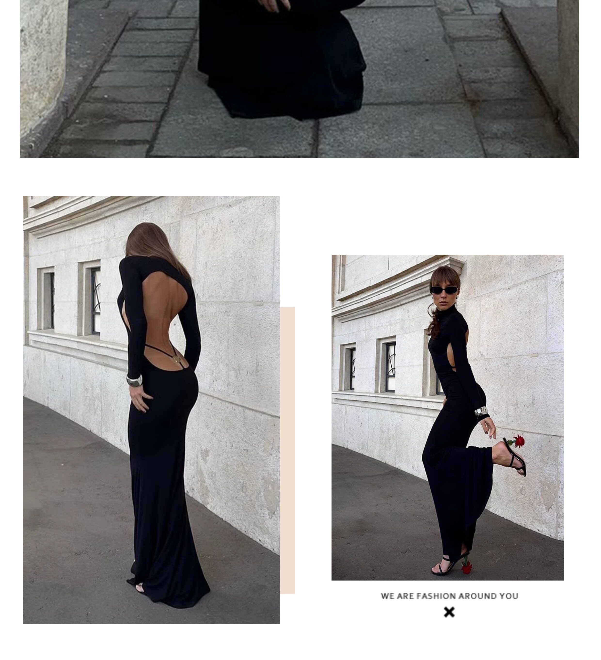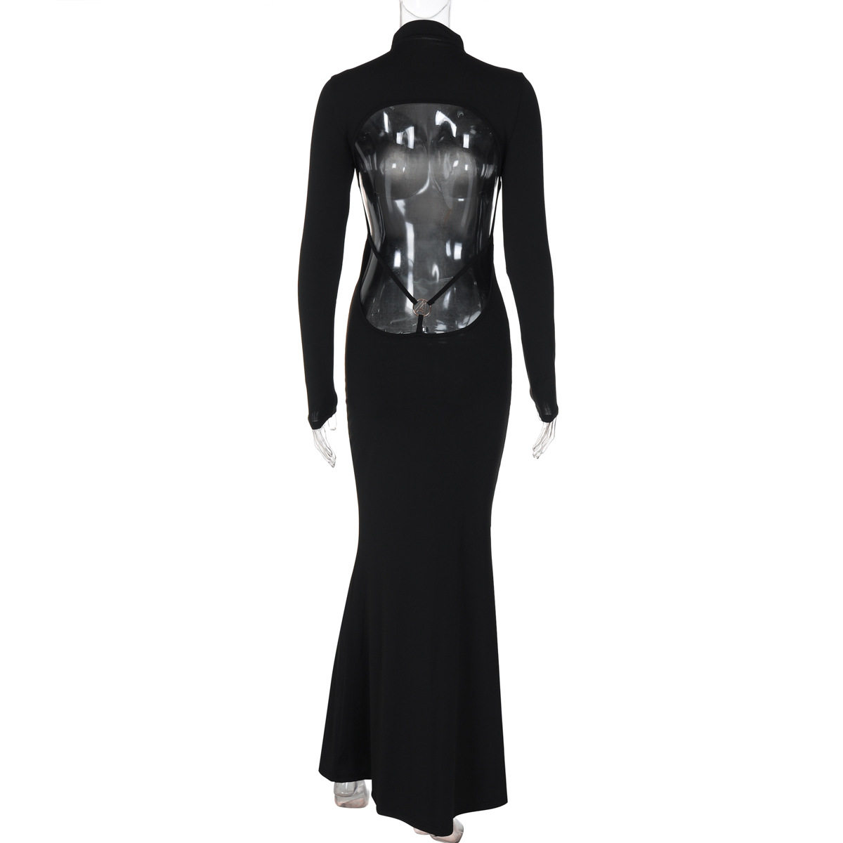 Ahagaga Модная черная цветная длинная юбка, дизайнерское платье, высокий воротник, с акцентом на бедрах, европейский стиль, с открытой спиной