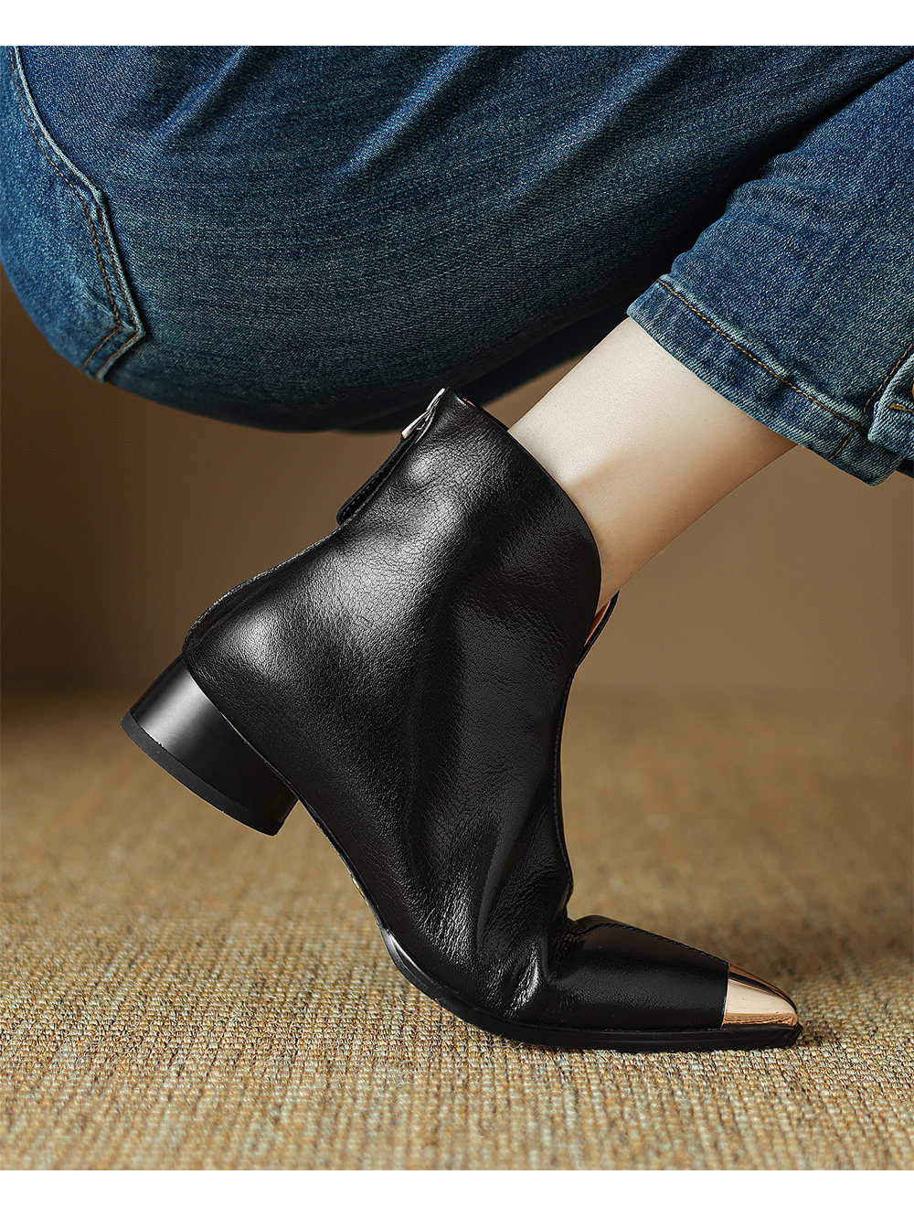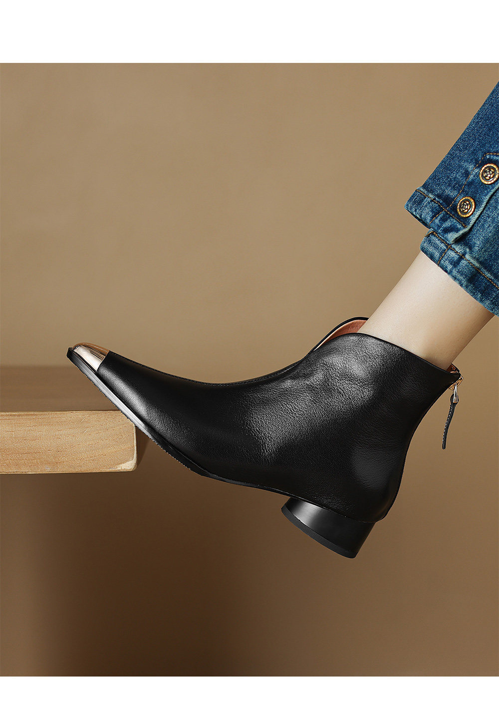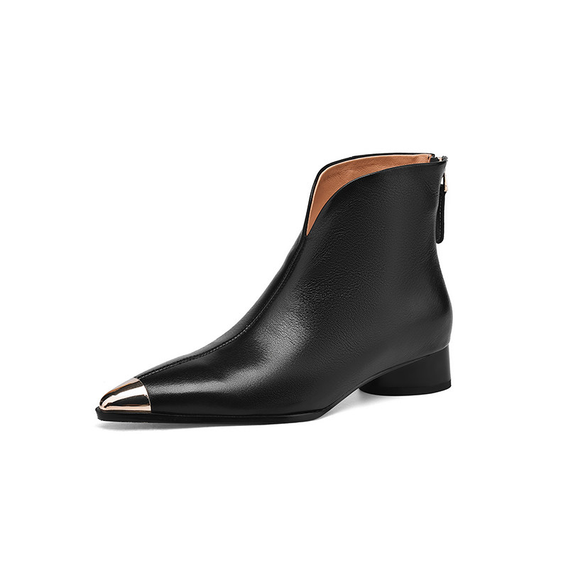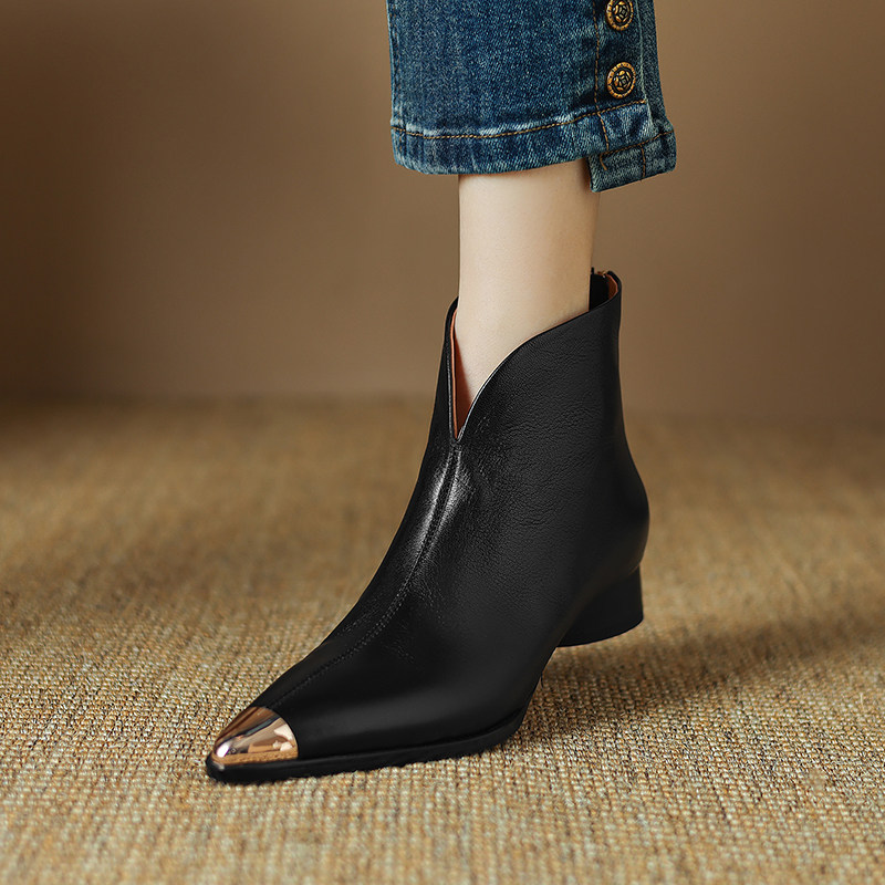 Модные металлические универсальные демисезонные комфортные короткие сапоги, из натуральной кожи