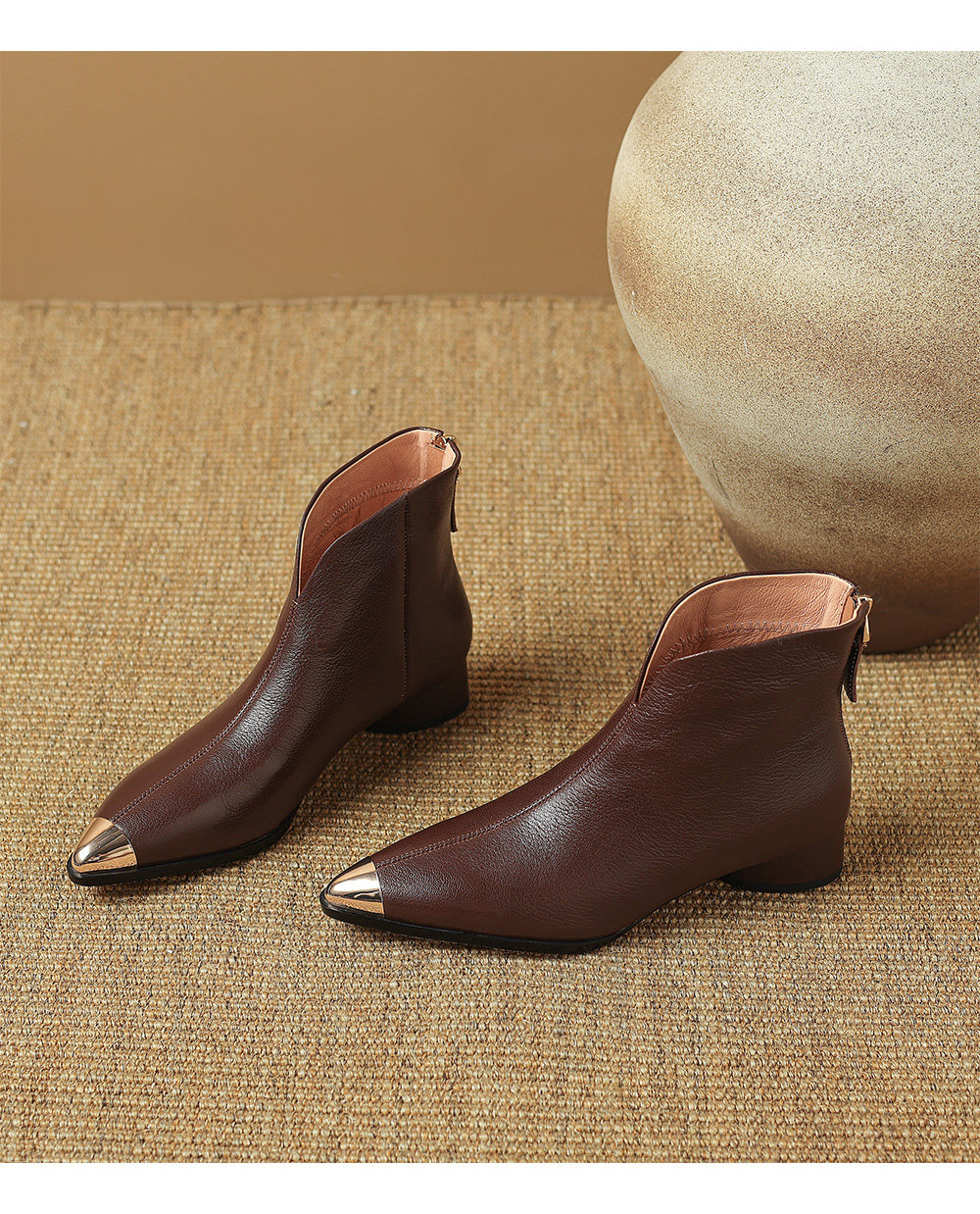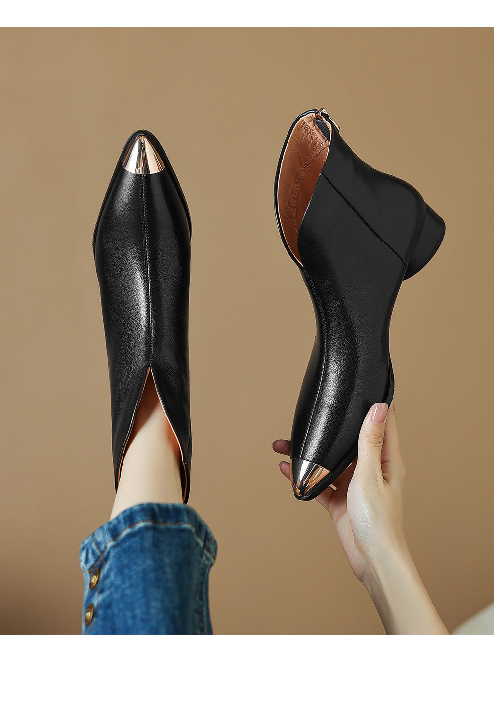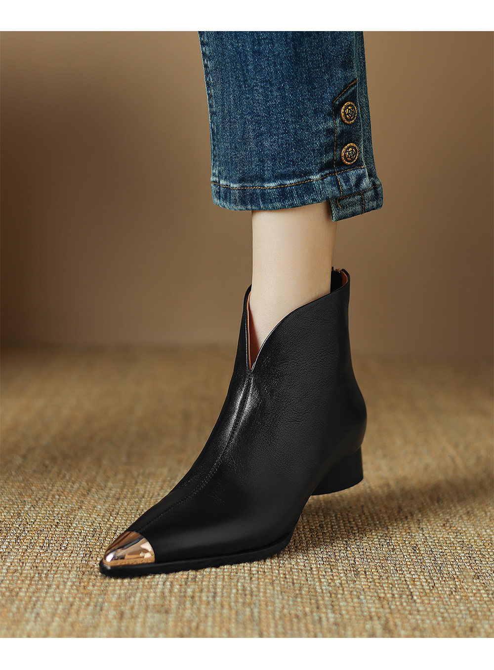 Модные металлические универсальные демисезонные комфортные короткие сапоги, из натуральной кожи