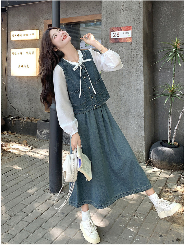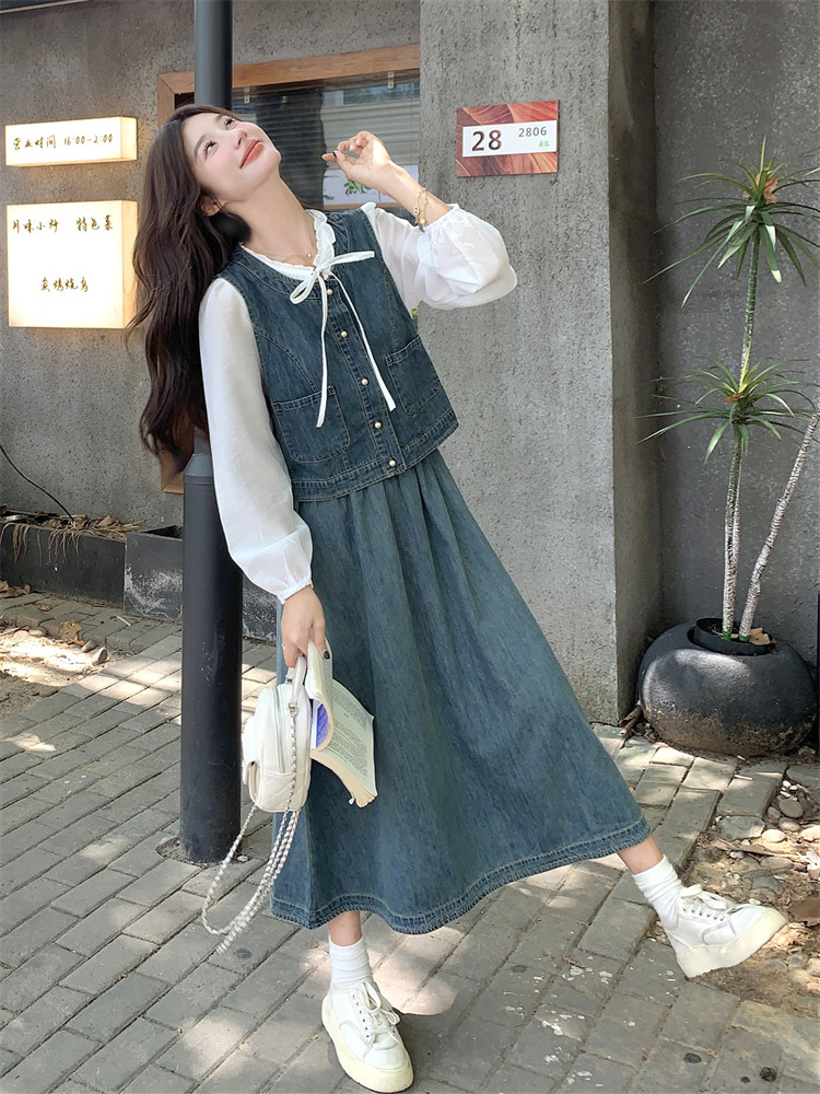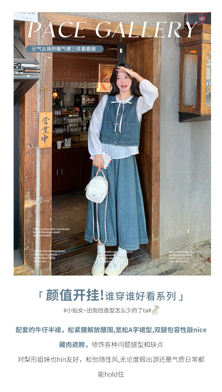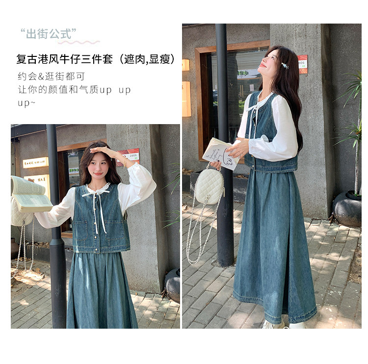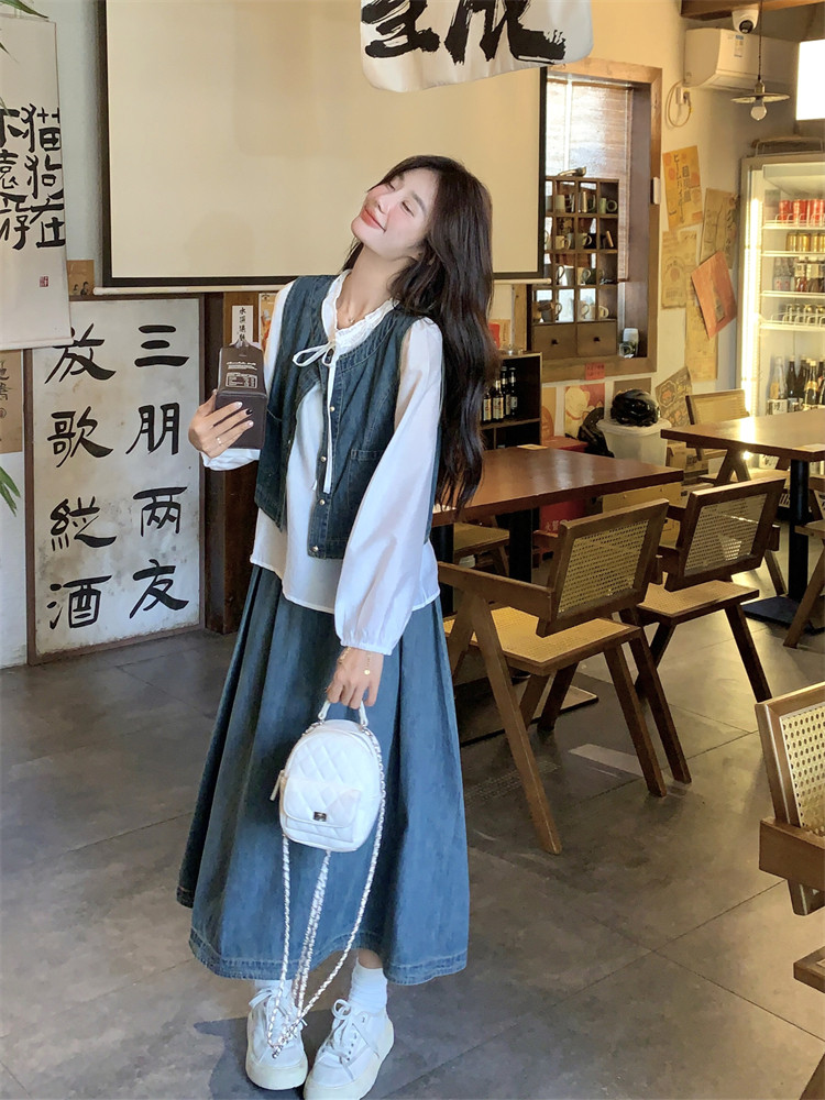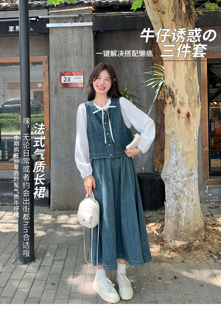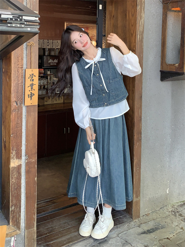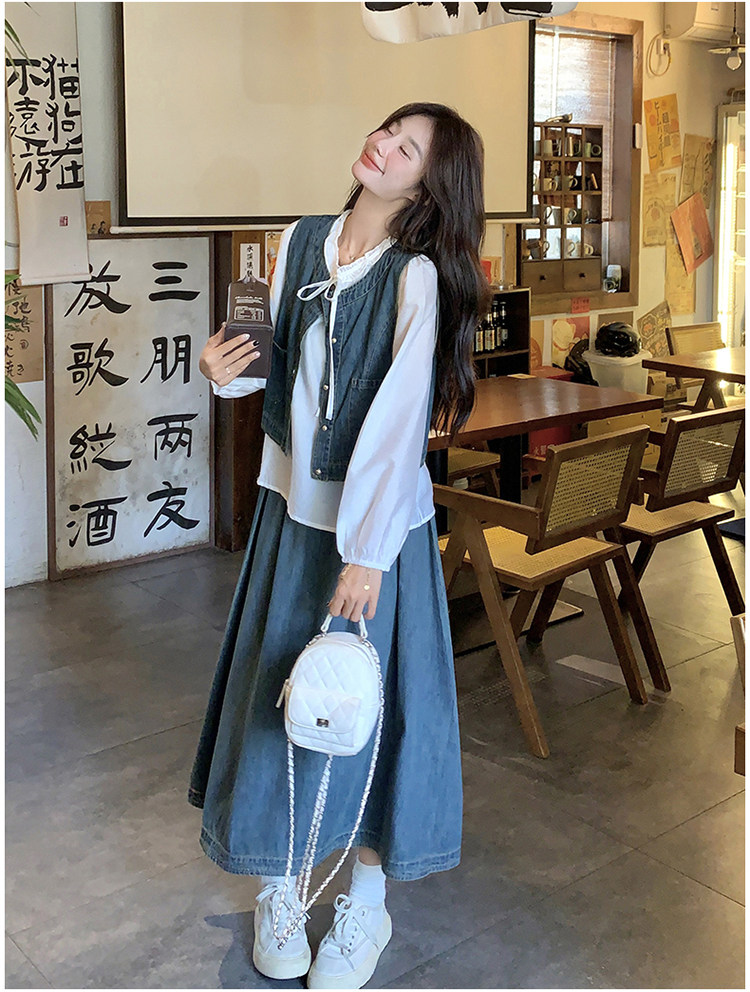 Милая рубашка, осенний комплект, юбка, французский стиль, 3 предмета