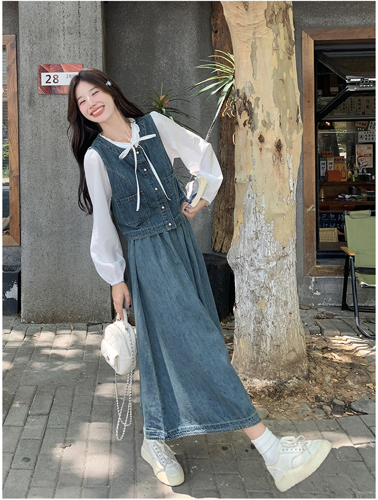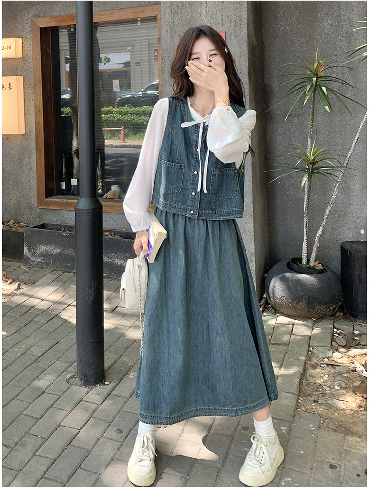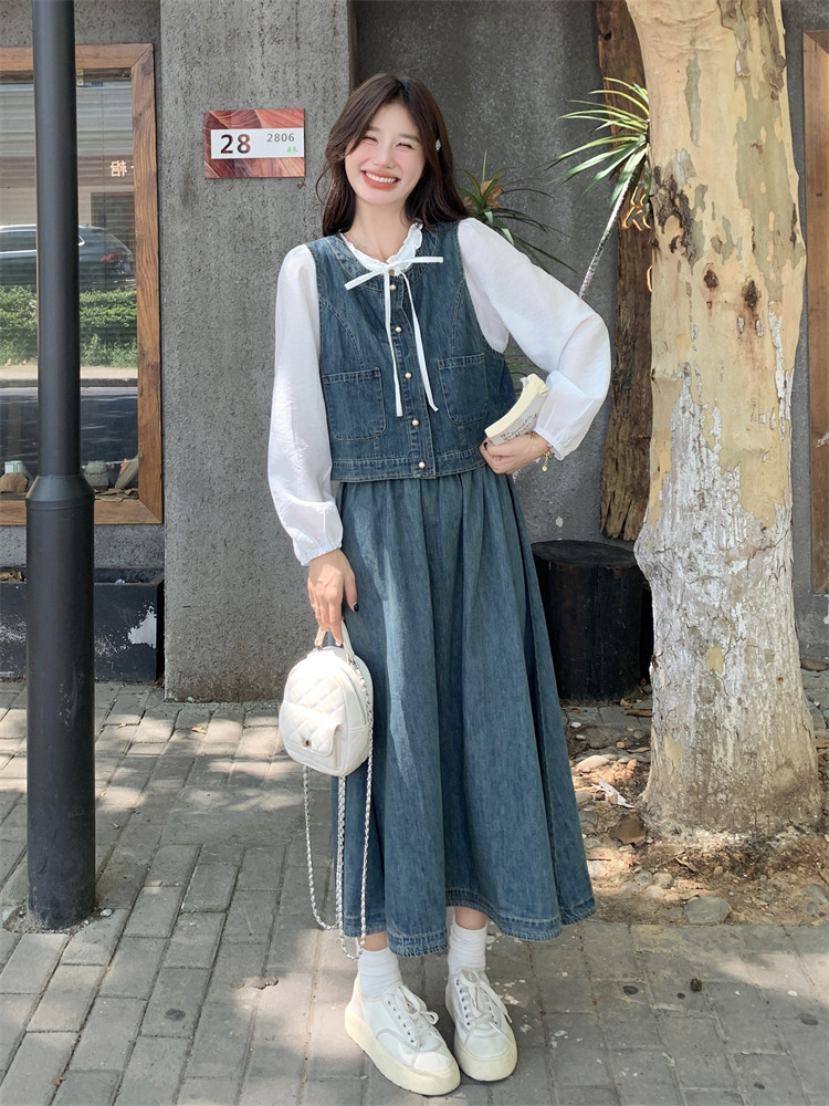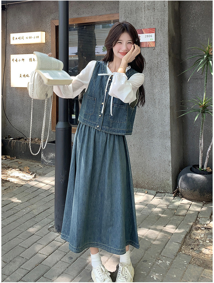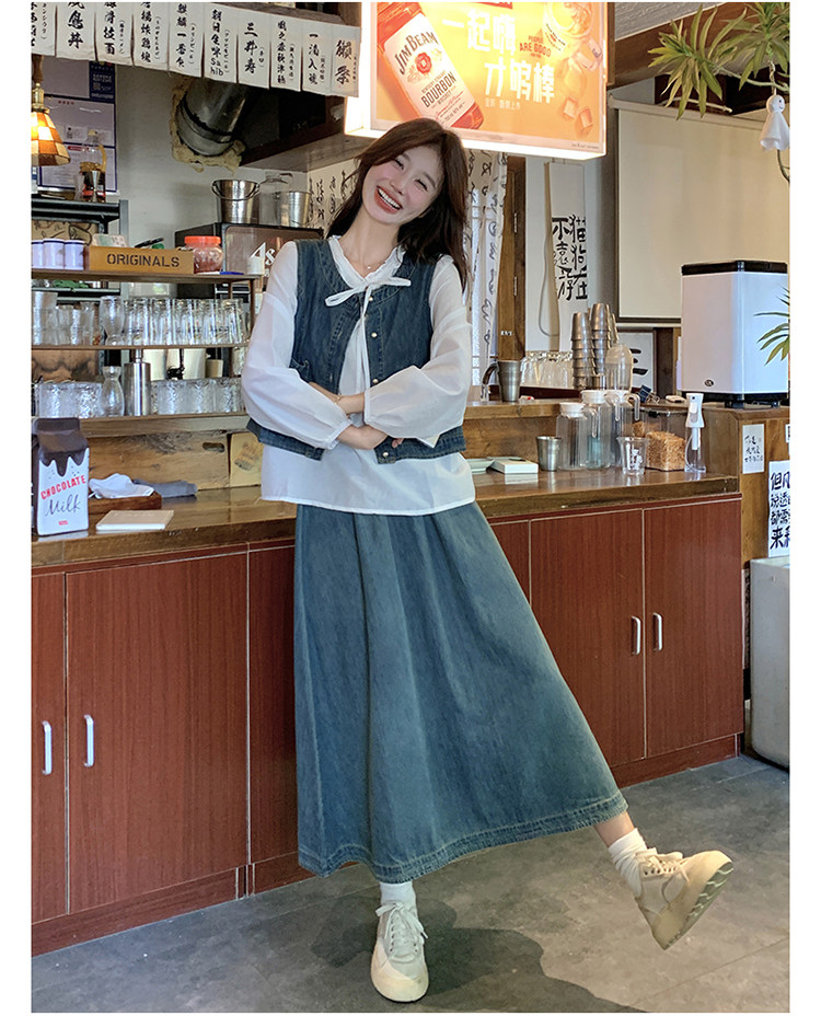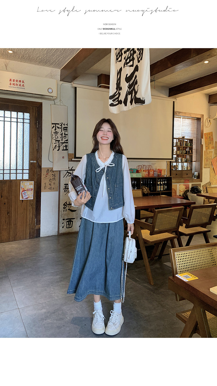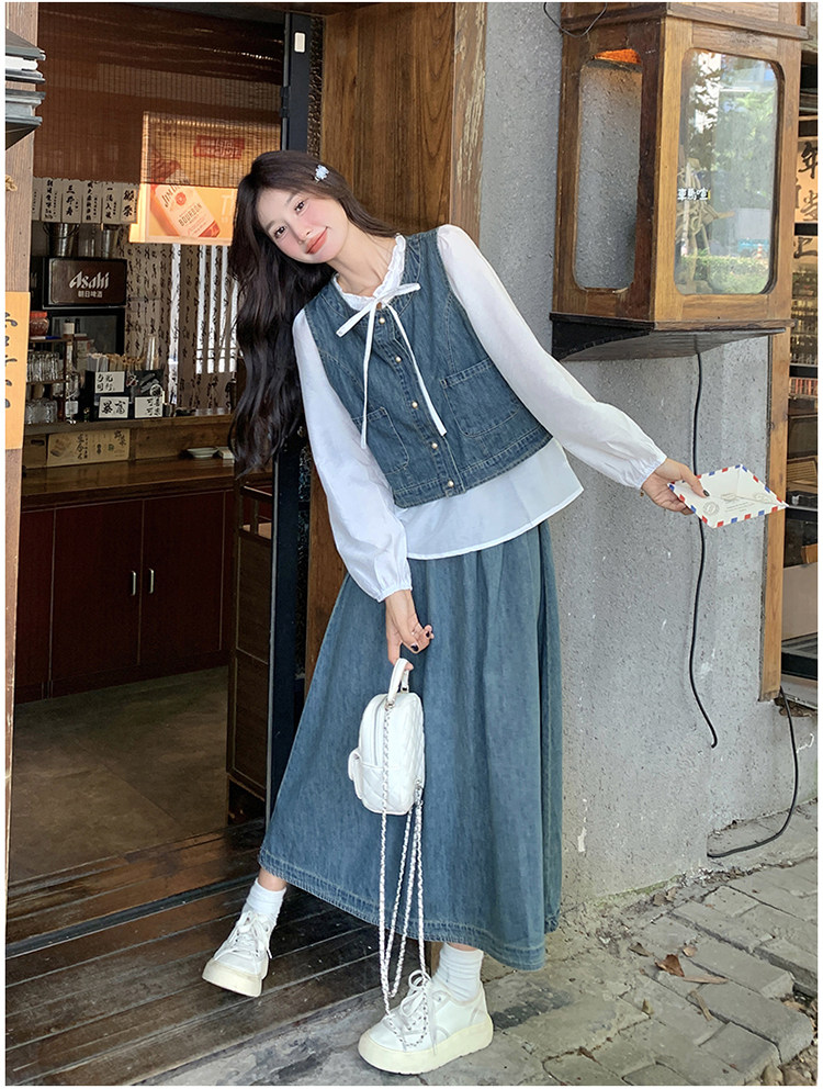 Милая рубашка, осенний комплект, юбка, французский стиль, 3 предмета
