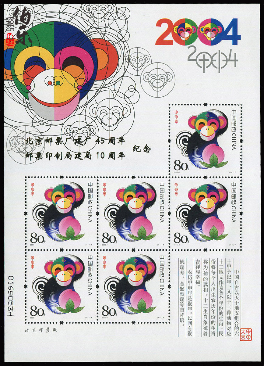 [Bole Post News Agency] 2004-01 Jiashen Nian Monkey Small Edition (плюс слово) Small Version Limited Edition