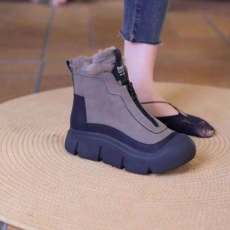 Женские ботинки Martin, новинка 2024 года, зимние туфли с высоким берцем в британском стиле, женские бархатные противоскользящие хлопковые туфли на толстой подошве WF58