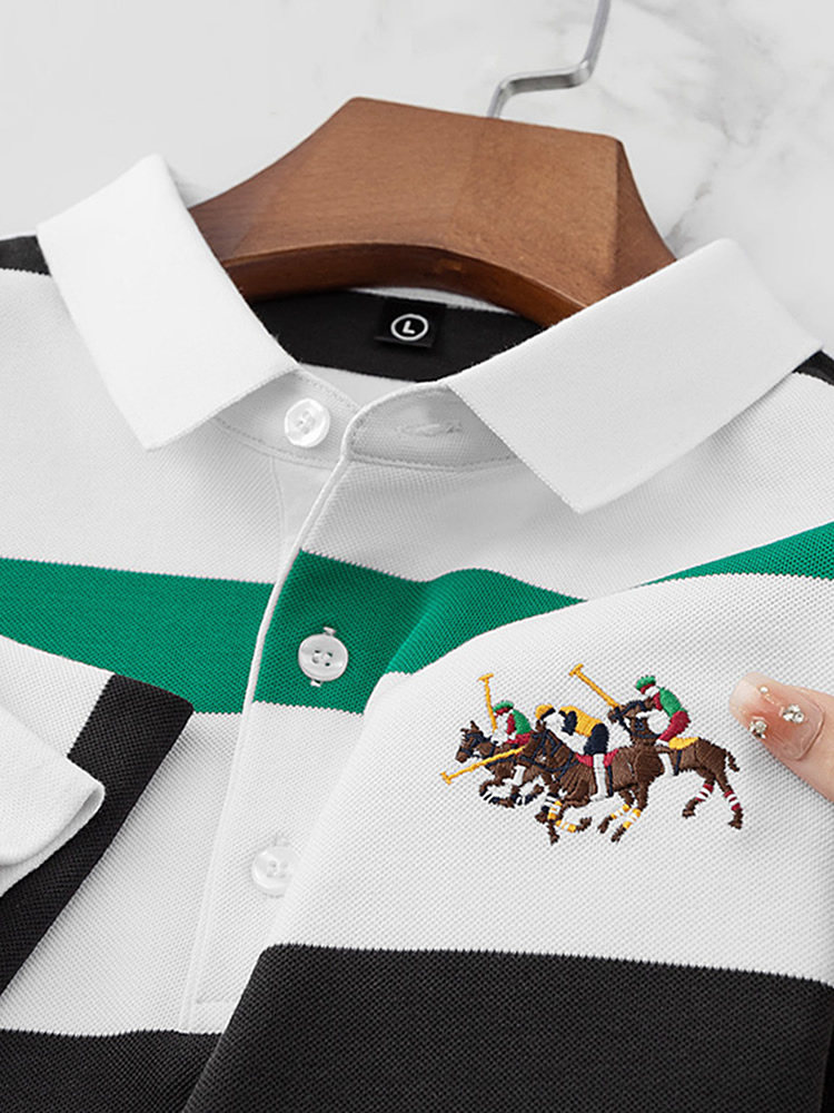 Качественная хлопковая футболка polo, осенний лонгслив, с вышивкой
