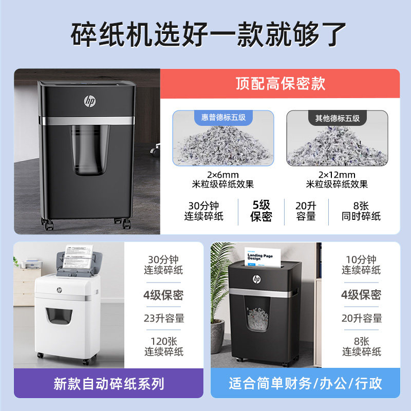 Профессиональный измельчитель бумаги HP для офиса, специальный бытовой высокий уровень безопасности 5, конфиденциальность, настольный измельчитель бумаги для документов, компакт-дисков, измельчитель большой емкости, небольшой измельчитель B50820MC, квазиуровень 6