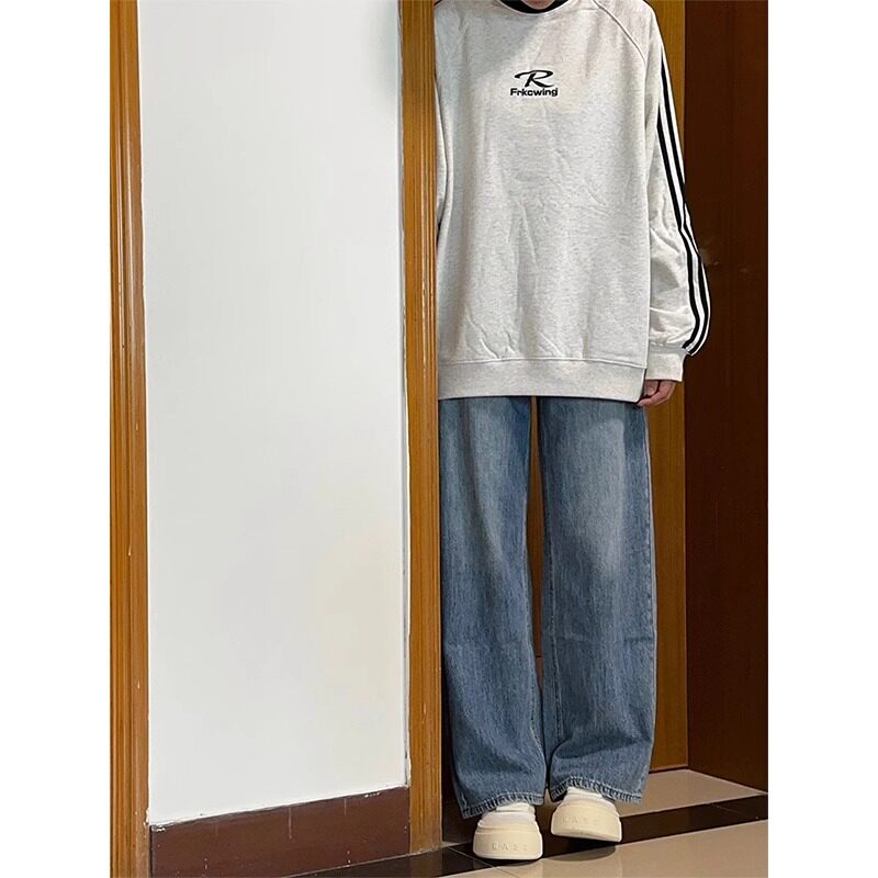 Ретро весенние прямые свободные джинсы, штаны, для формы тела «груша», тренд сезона, большой размер, высокая талия, свободный крой