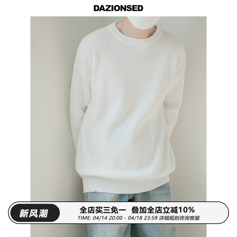 Трикотажный свитер, базовая однотонная шерстяная рубашка с круглым воротником, осенний