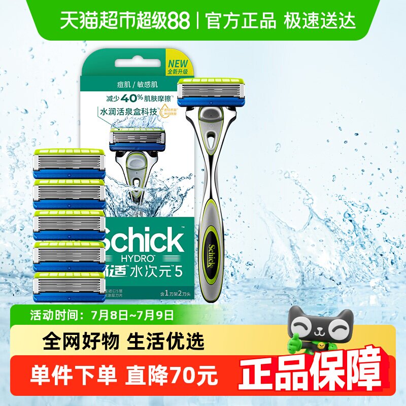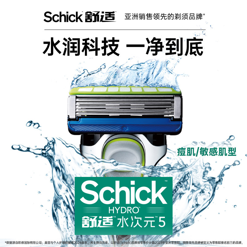 Schick/舒适 Water Dimension 5 Бритва для кожи с прыщами/чувствительной кожи (1 держатель лезвий, 6 лезвий)