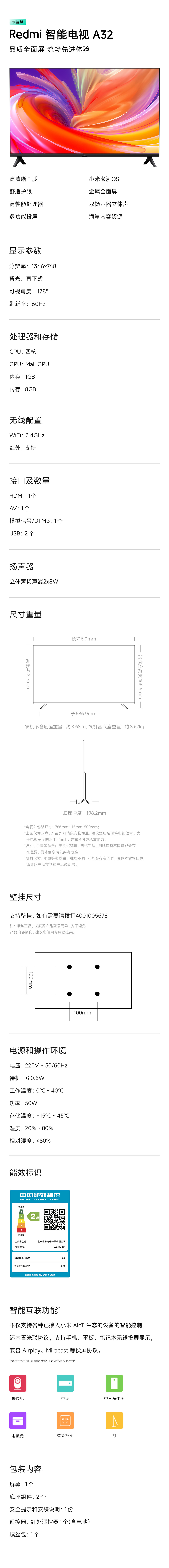Xiaomi TV Redmi A32 -INCH Smart High -Definition Tablet Home спальня телевизор