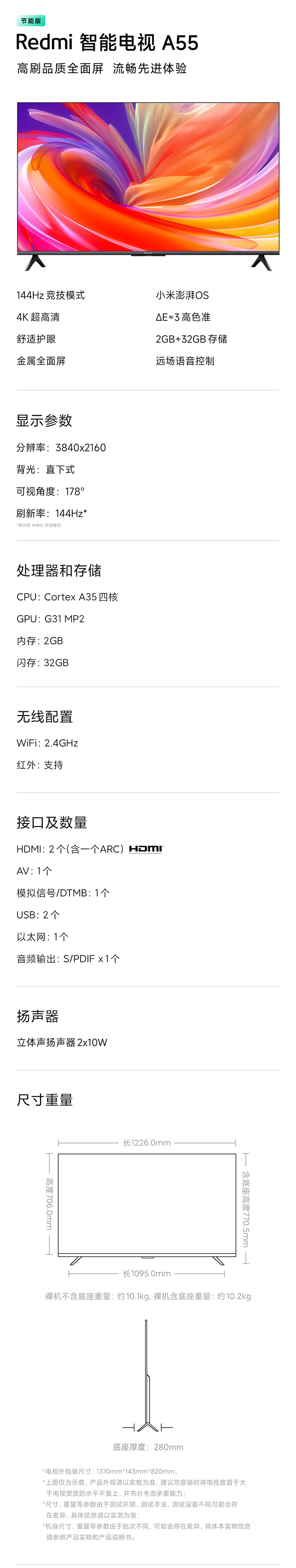 Xiaomi Redmi A55 -дюйм 2025 High -Definition LCD ЖК -телевизор использует старую модушную и новую версию, обеспечивающую энергию субсидий