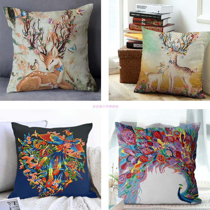 Четыре стиля подушек с перекрестными сшиванием для богатых оленей, матери и сына, оленя, белой птицы, феникса, павлина, подушки поперечного сшивания].