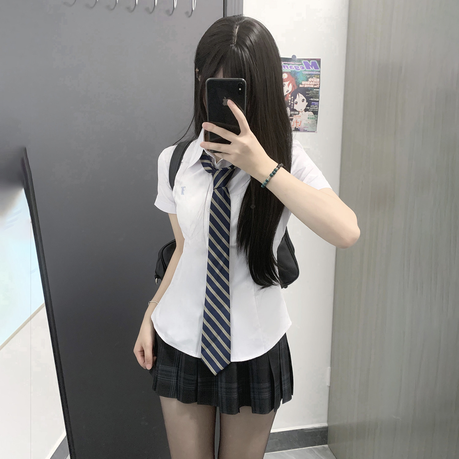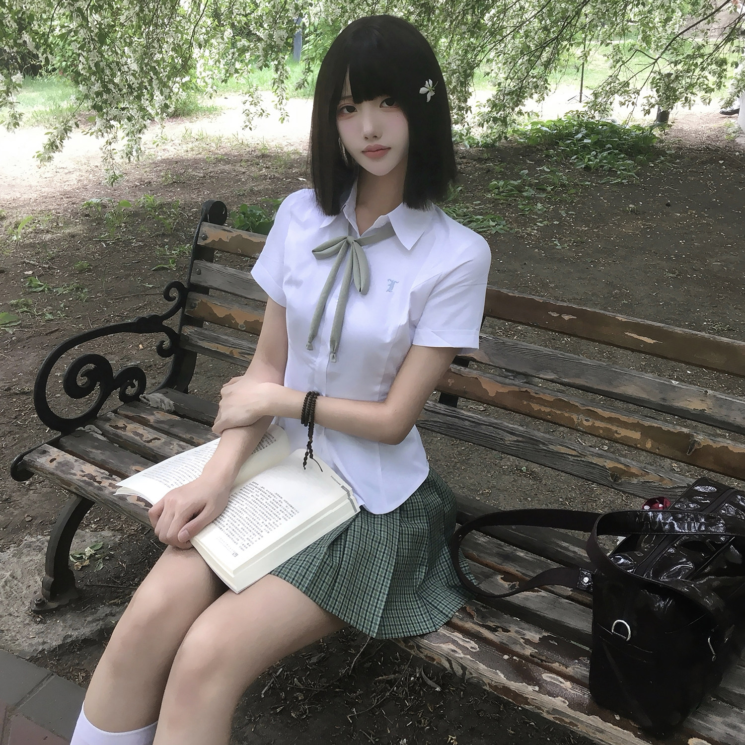 花千猪 Оригинальная рубашка, многоцветный приталенный корсет, двухцветная студенческая юбка в складку, короткий рукав