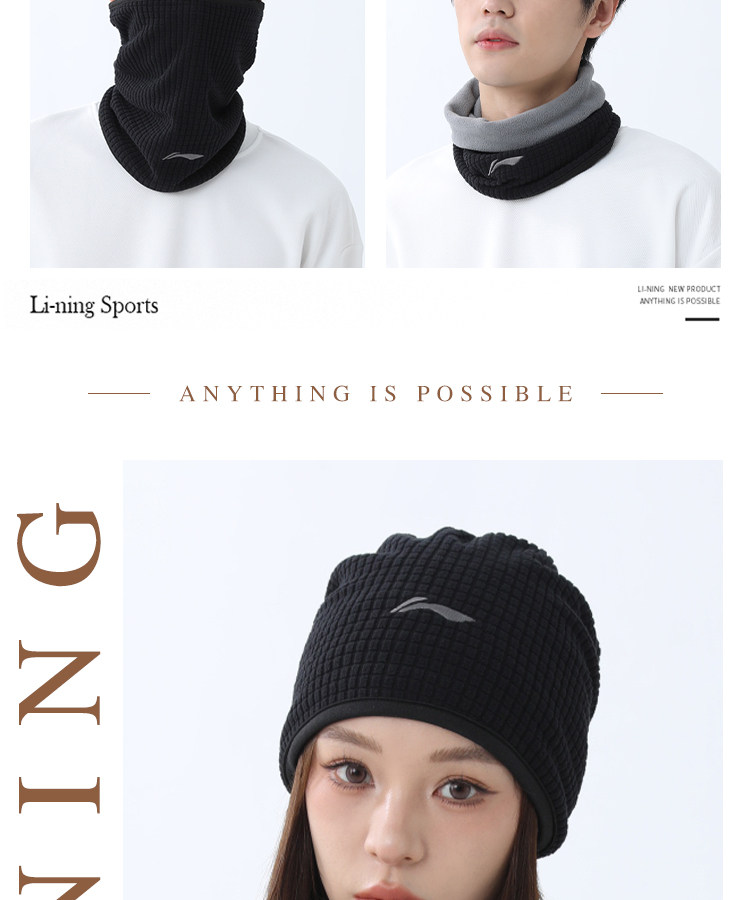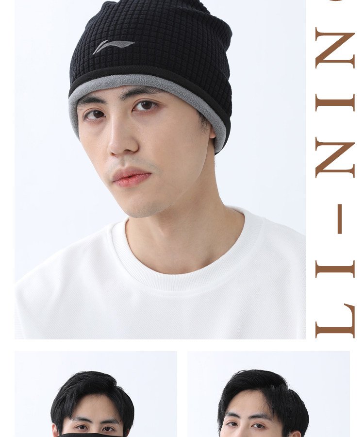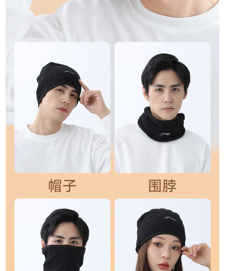 Li Ning, демисезонная шапка, шарф, ветрозащитная бархатная зимняя маска, мужской стиль, новая коллекция