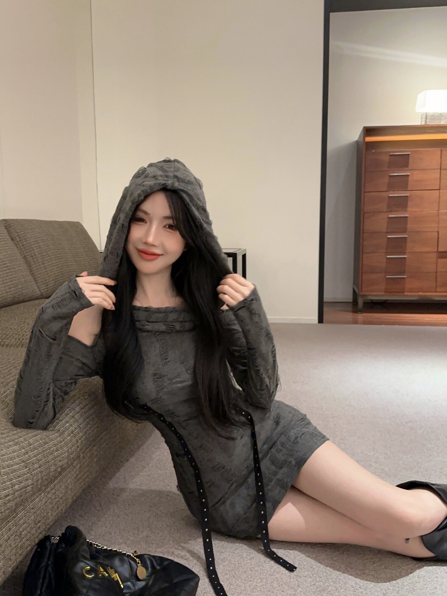 Лонгслив с капюшоном, сексуальное платье, в американском стиле, с акцентом на бедрах