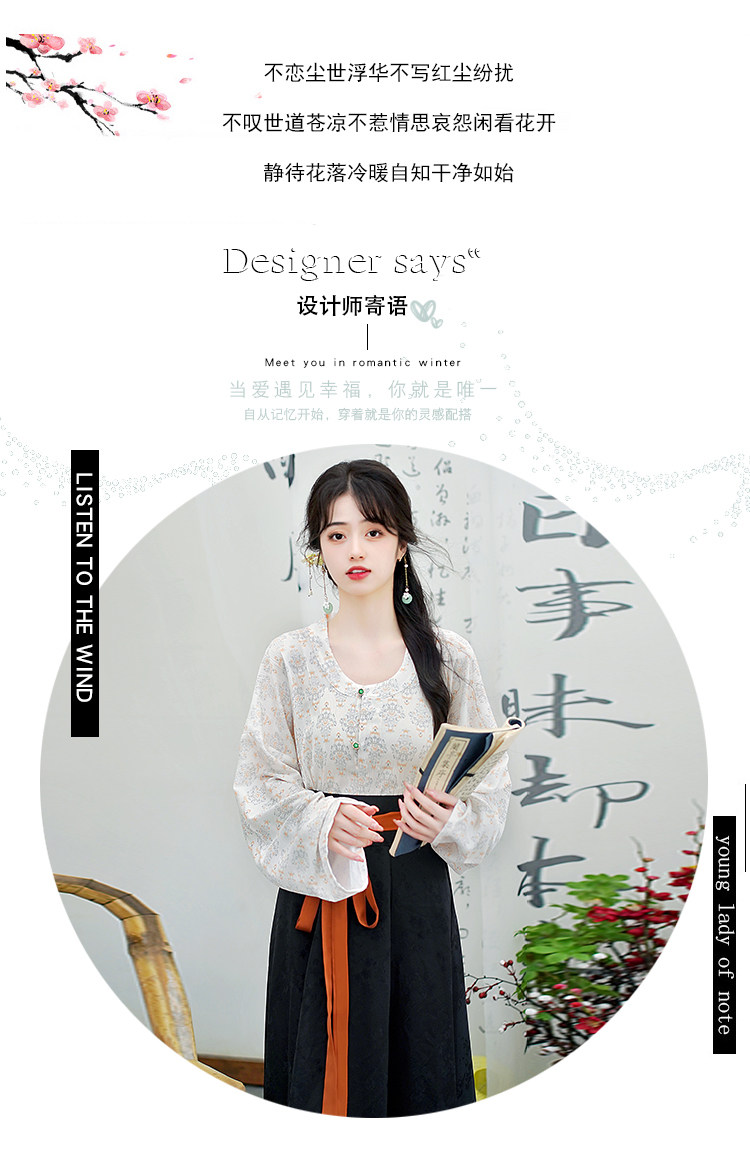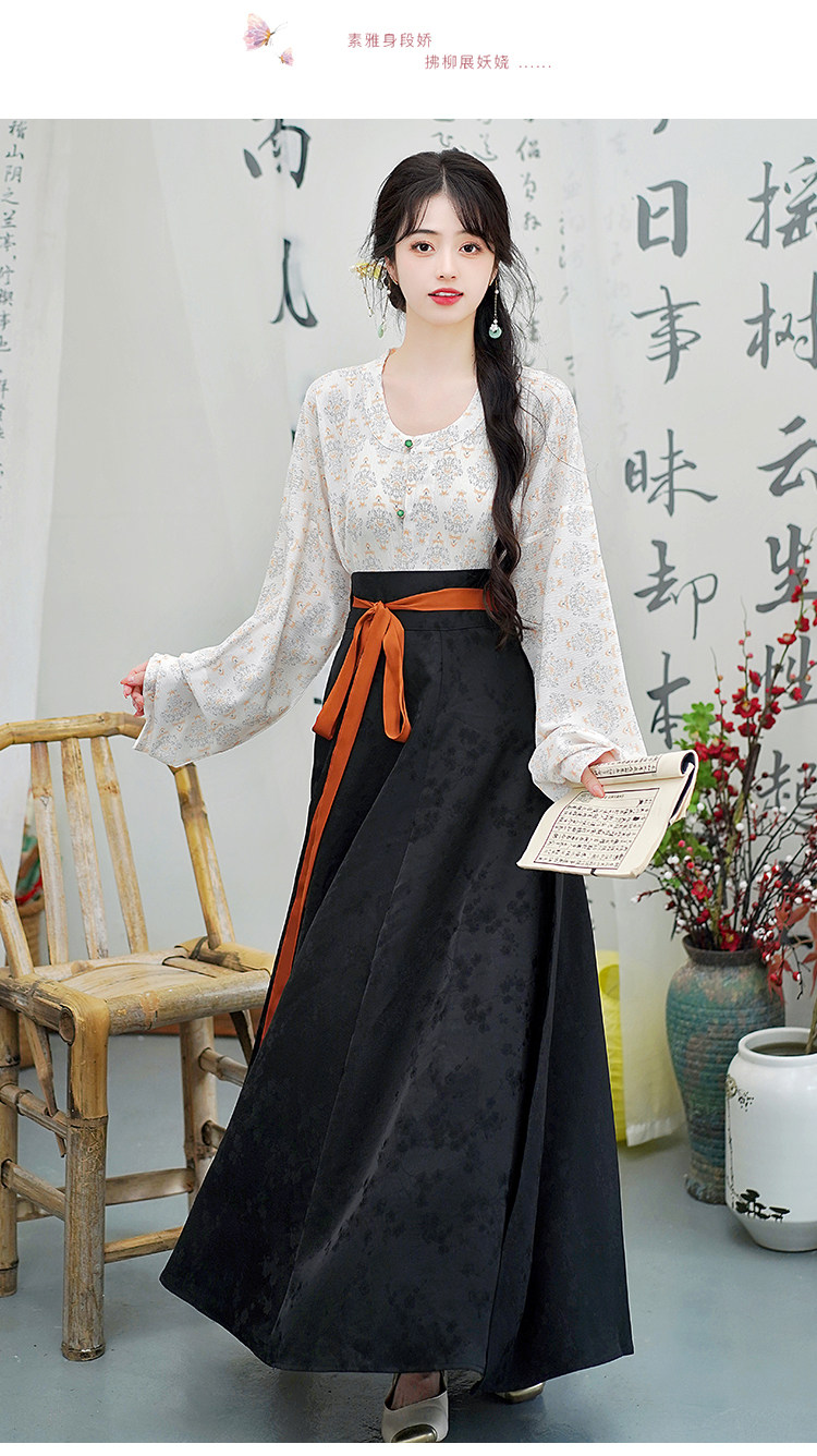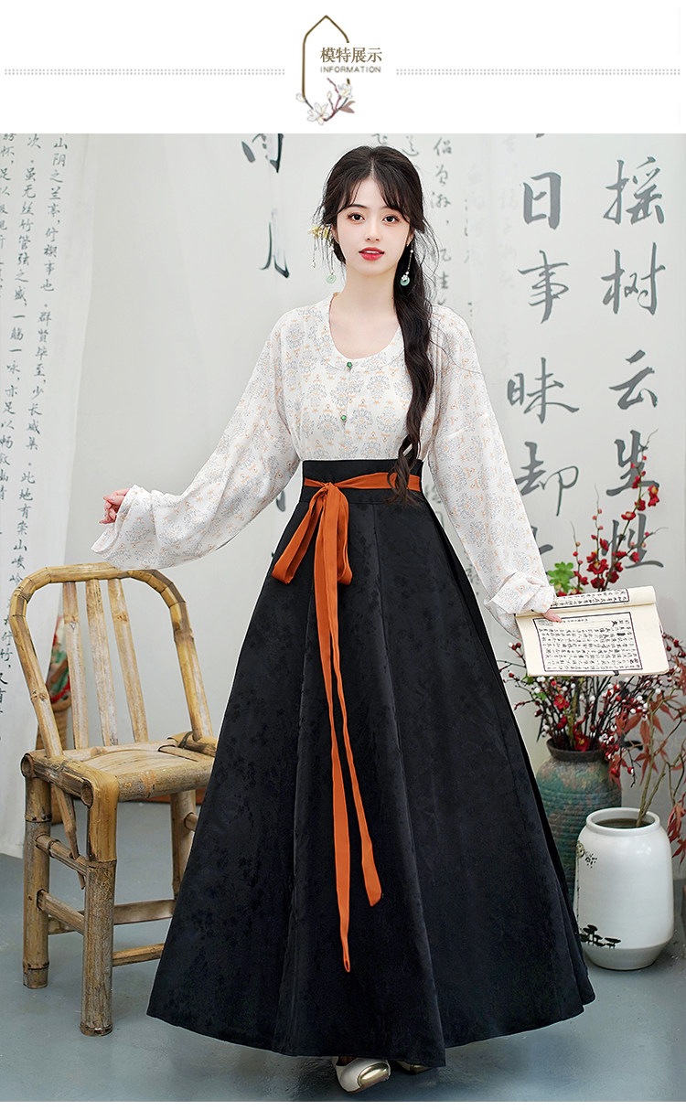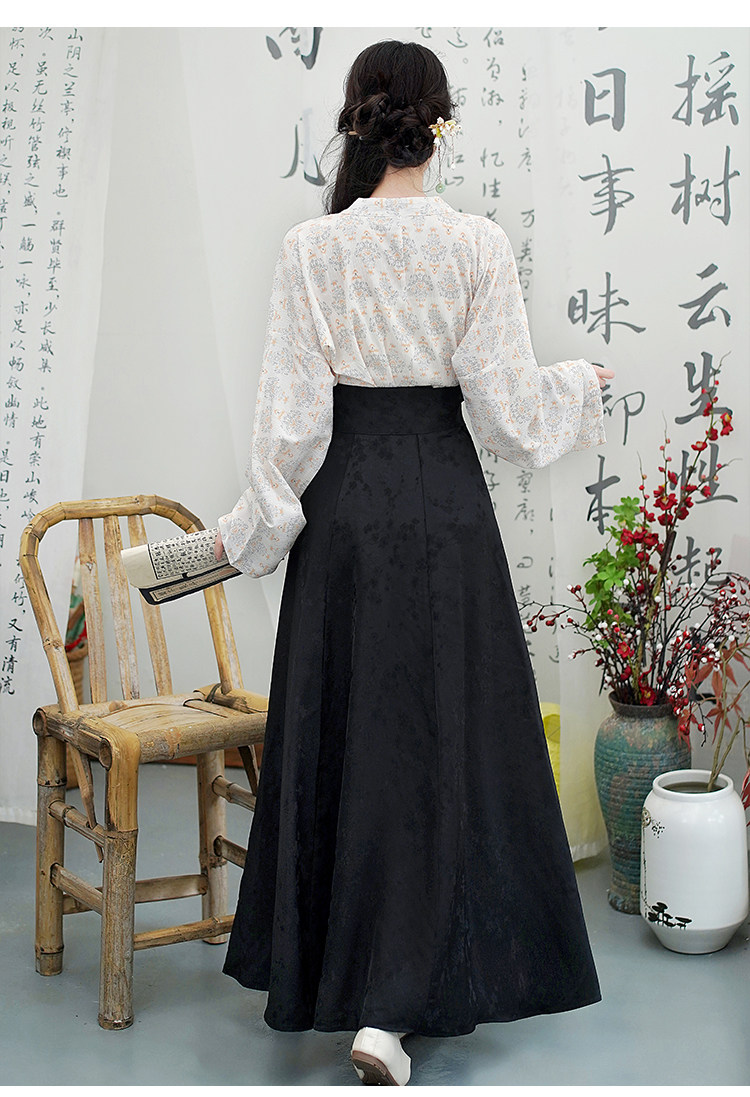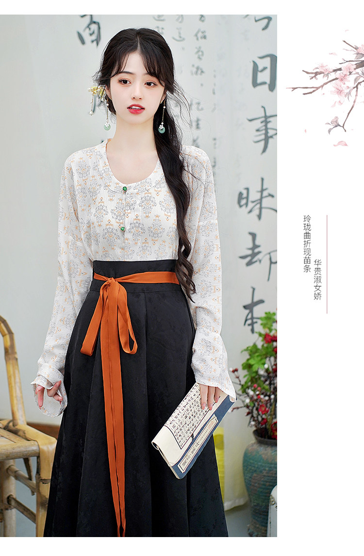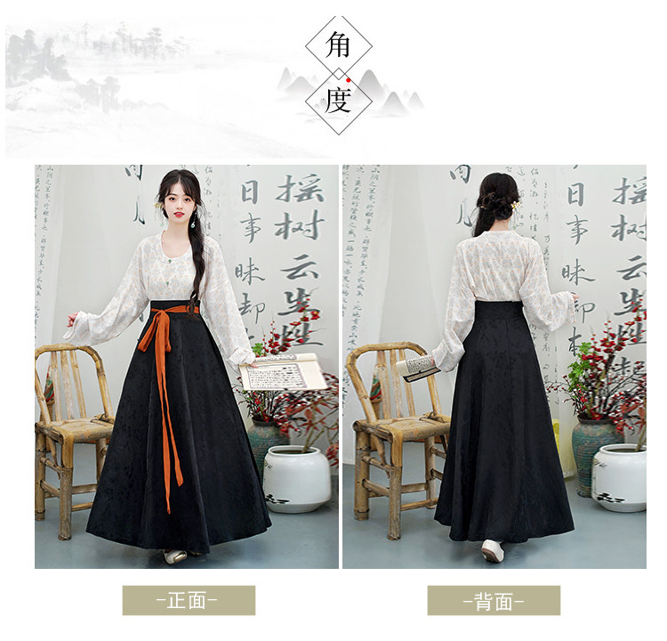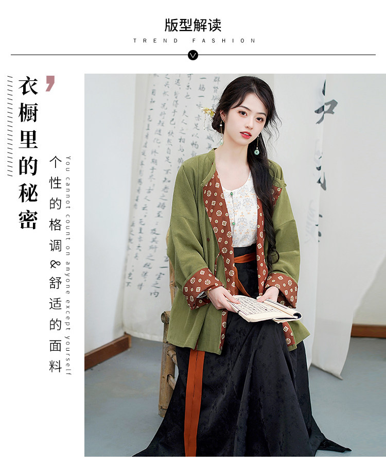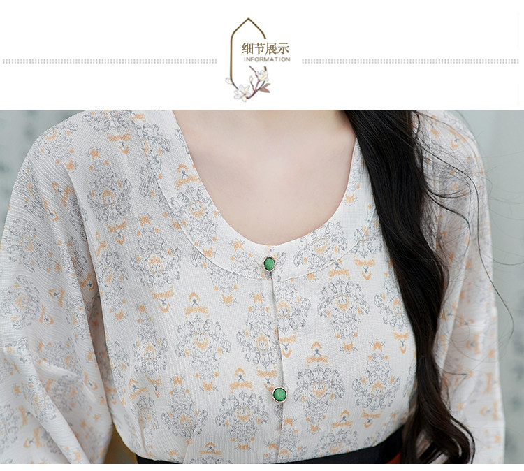 Династия Танга висящая рубашка с рубашкой круглая шея Улучшена ханфу топ династия Длинные рукава с двумя грудными короткими рубашкой для женщин осень