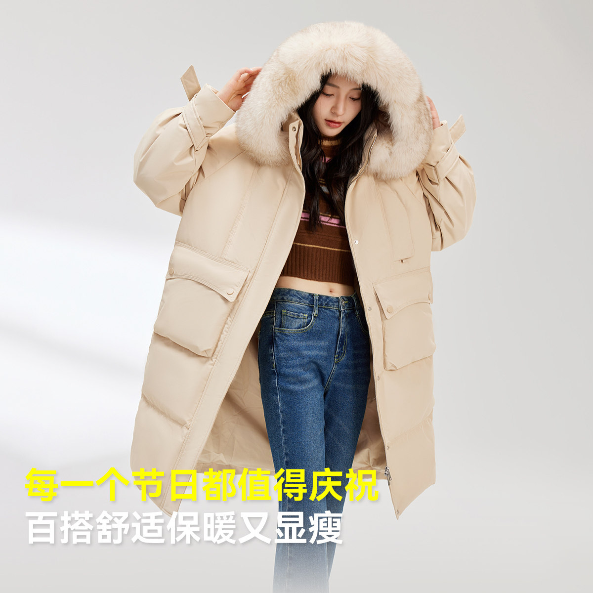 [Cheng Yi рекомендует] Snow Flying 25th новая зимняя женская куртка-пуховик средней длины с лисьим мехом и рукавами-бабочками бордового цвета