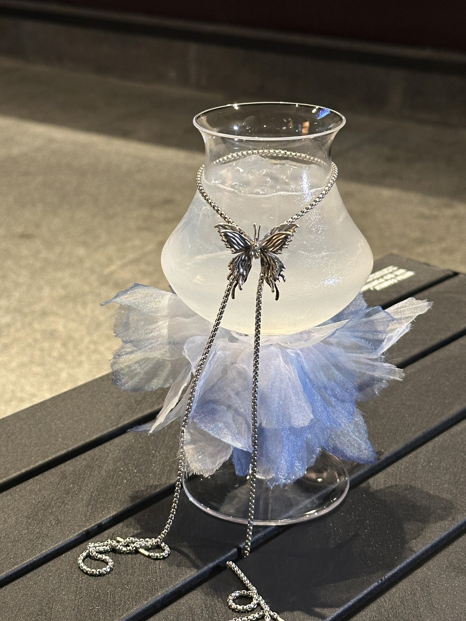 | Цвет: | Одиночный прозрачный стеклянный бокал для вина (без гарниров), Декоративное ожерелье, Пять декоративных кружевных цветов |