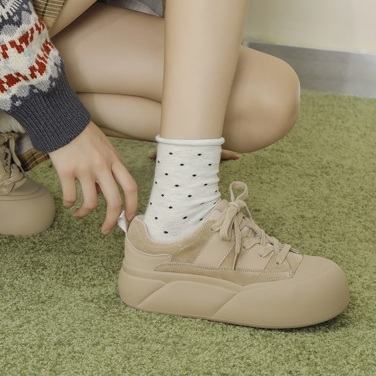伯爵猫 Депозит 5 юаней до 50 уродливых милых больших туфлей женская мерида пухлый торт густые нижние ботинки повседневные кроссовки