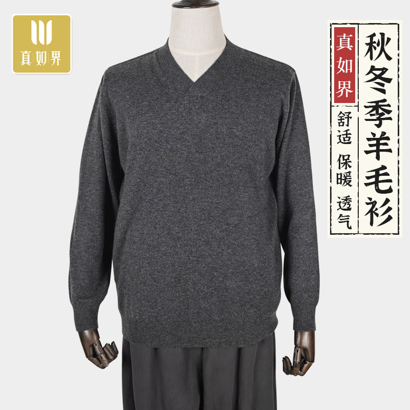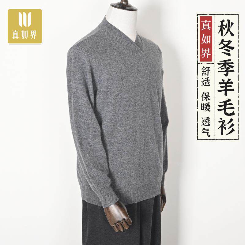 真如界 Зимний удерживающий тепло свитер, базовое приятное телу нижнее белье, шерстяной лонгслив с круглым воротником подходит для мужчин и женщин, V-образный вырез