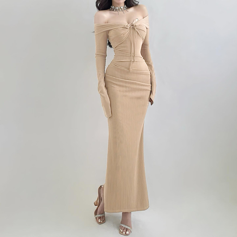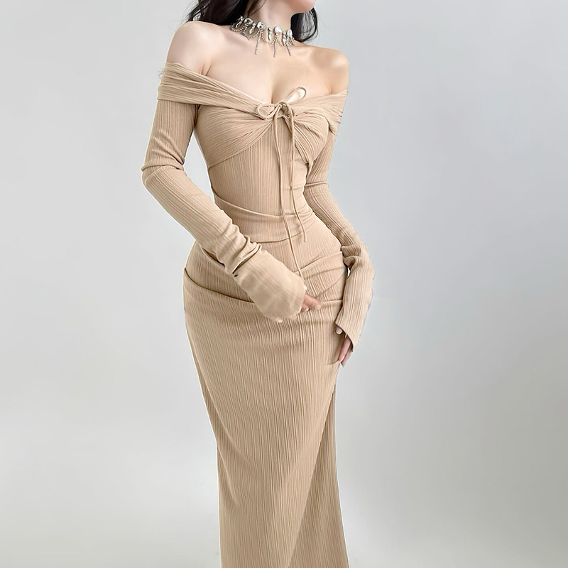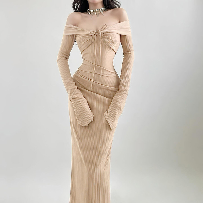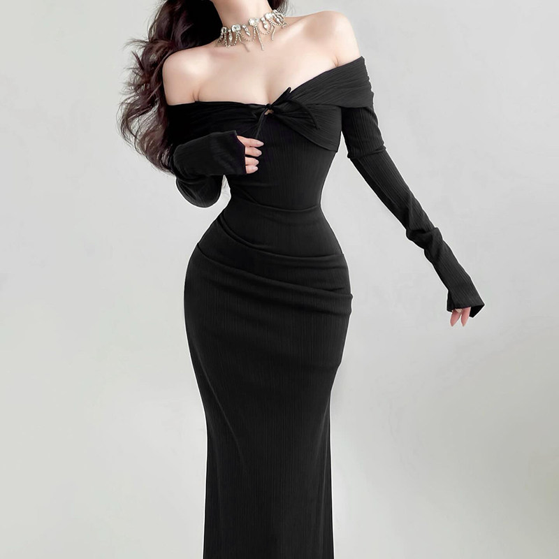 Лонгслив, сексуальное вечернее платье, открытые плечи и длинный рукав