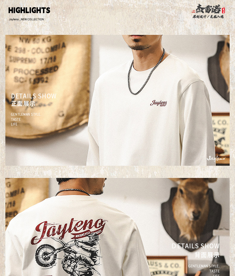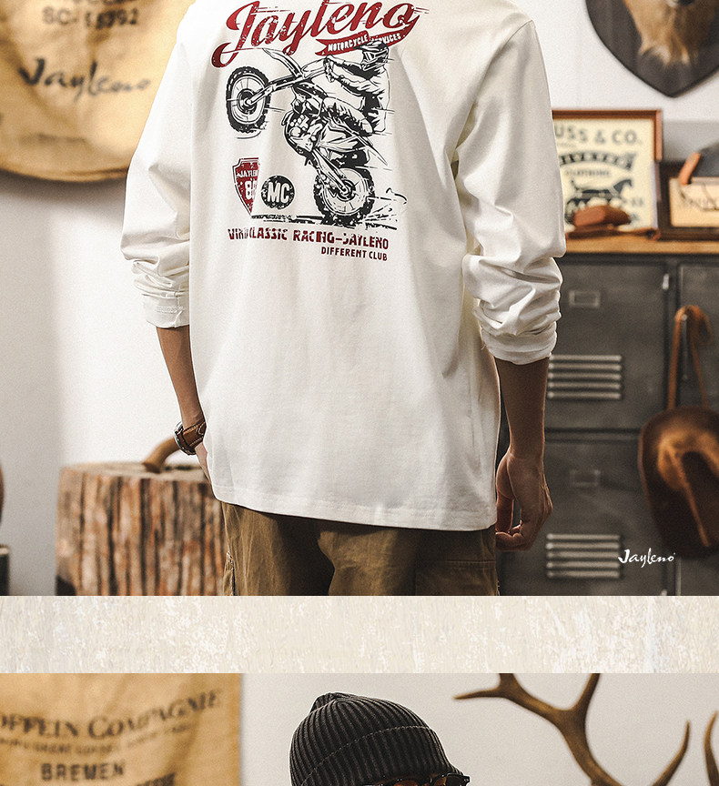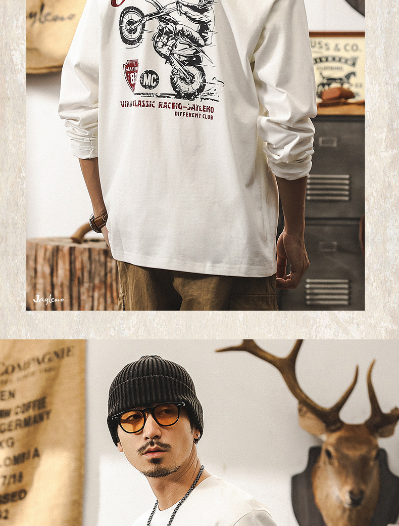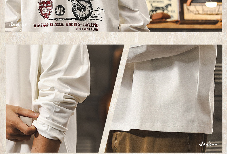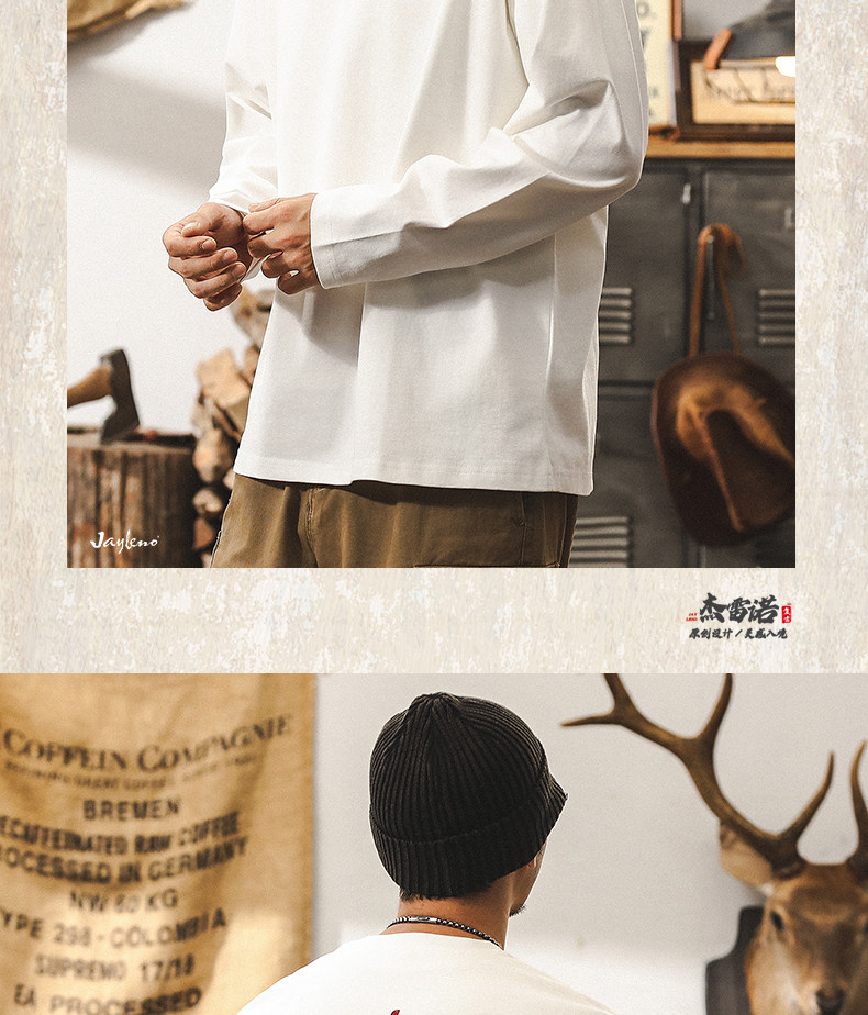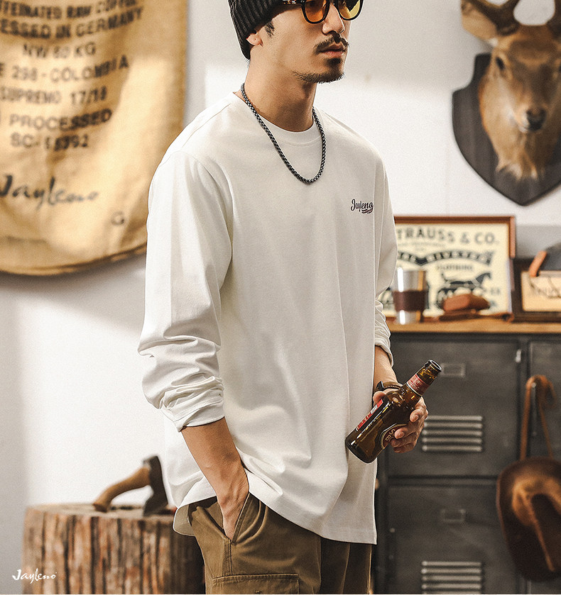 杰雷诺 Ретро мужской весенний трендовый хлопковый лонгслив, в американском стиле