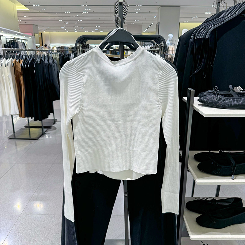 Данные ZA осень и зима новый продукт RA Женские простые и универсальные кнопки с длинными рукавами V-образным вырезом Top 3646100