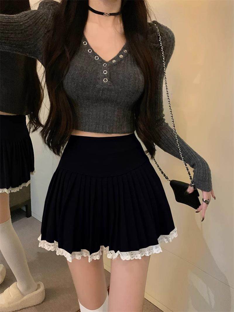 Шерстяная юбка в складку, кружевная мини-юбка, большой размер, высокая талия, юбка-пачка, А-силуэт